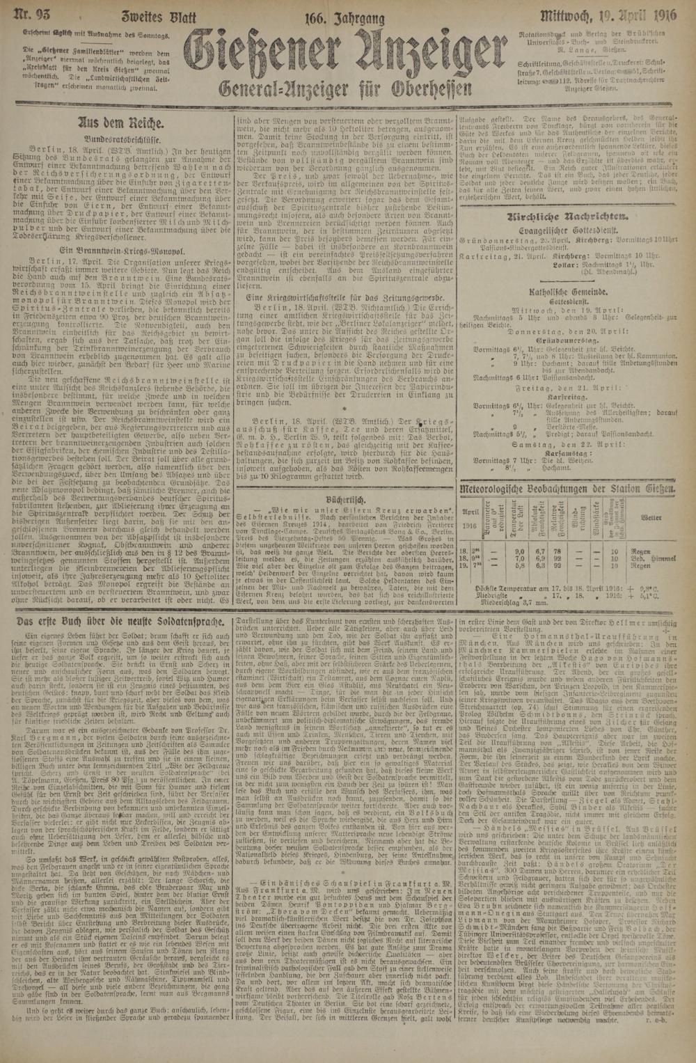 Regionale Zeitungen aus der Zeit des Ersten Weltkrieges