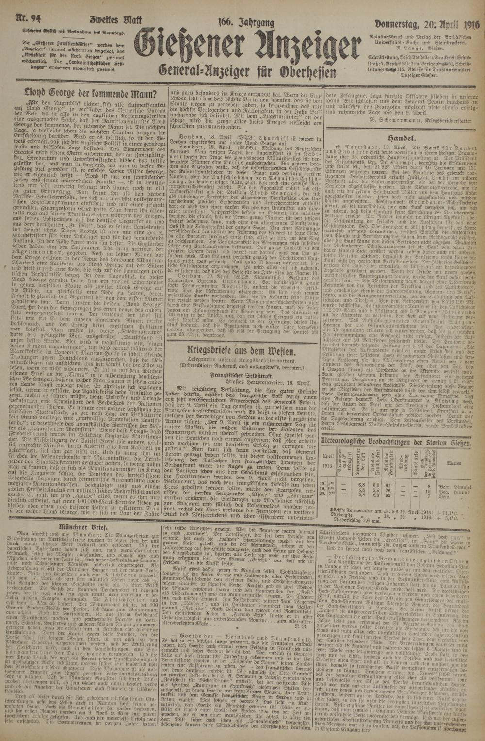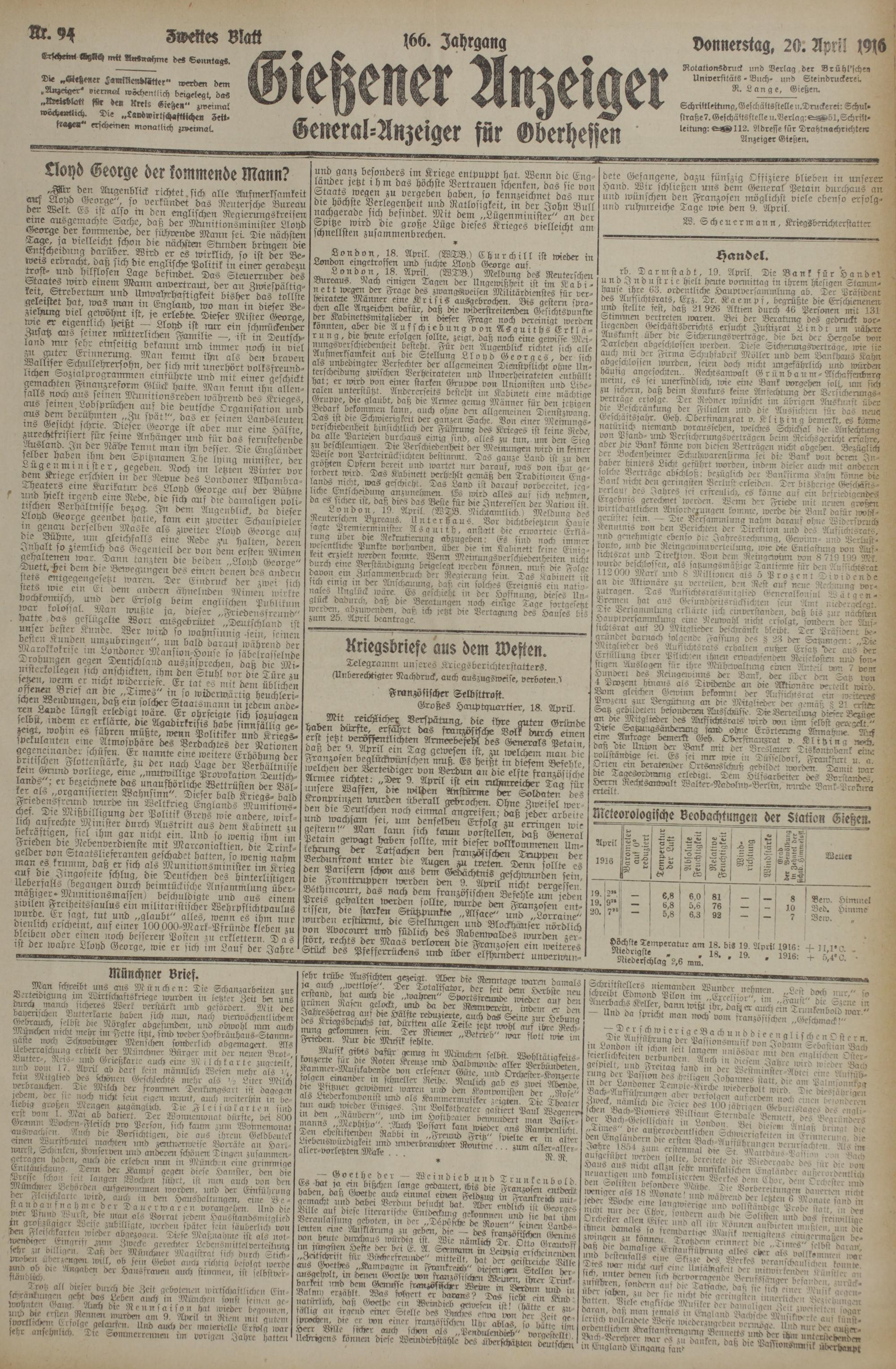 Regionale Zeitungen aus der Zeit des Ersten Weltkrieges