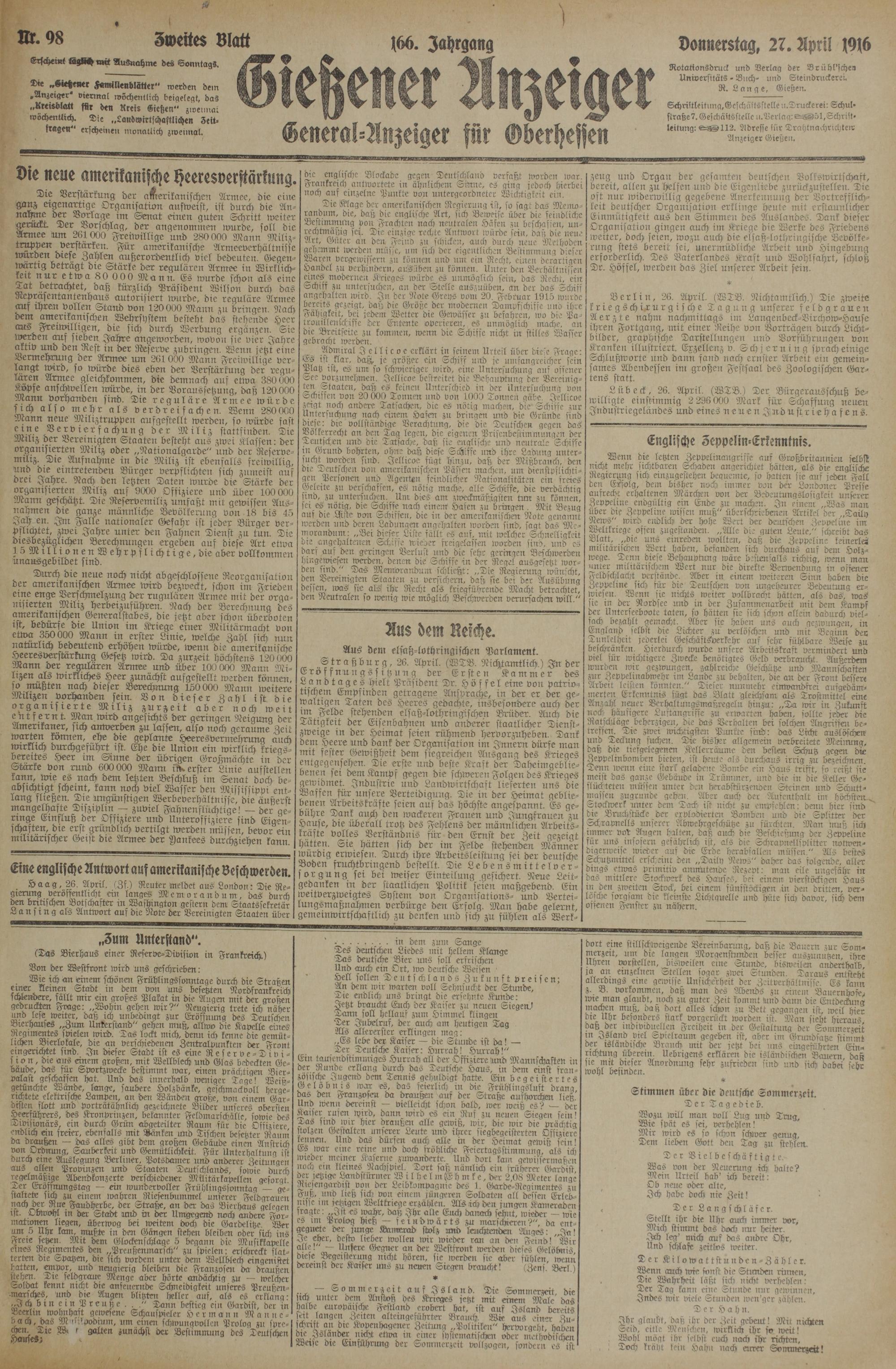 Regionale Zeitungen aus der Zeit des Ersten Weltkrieges