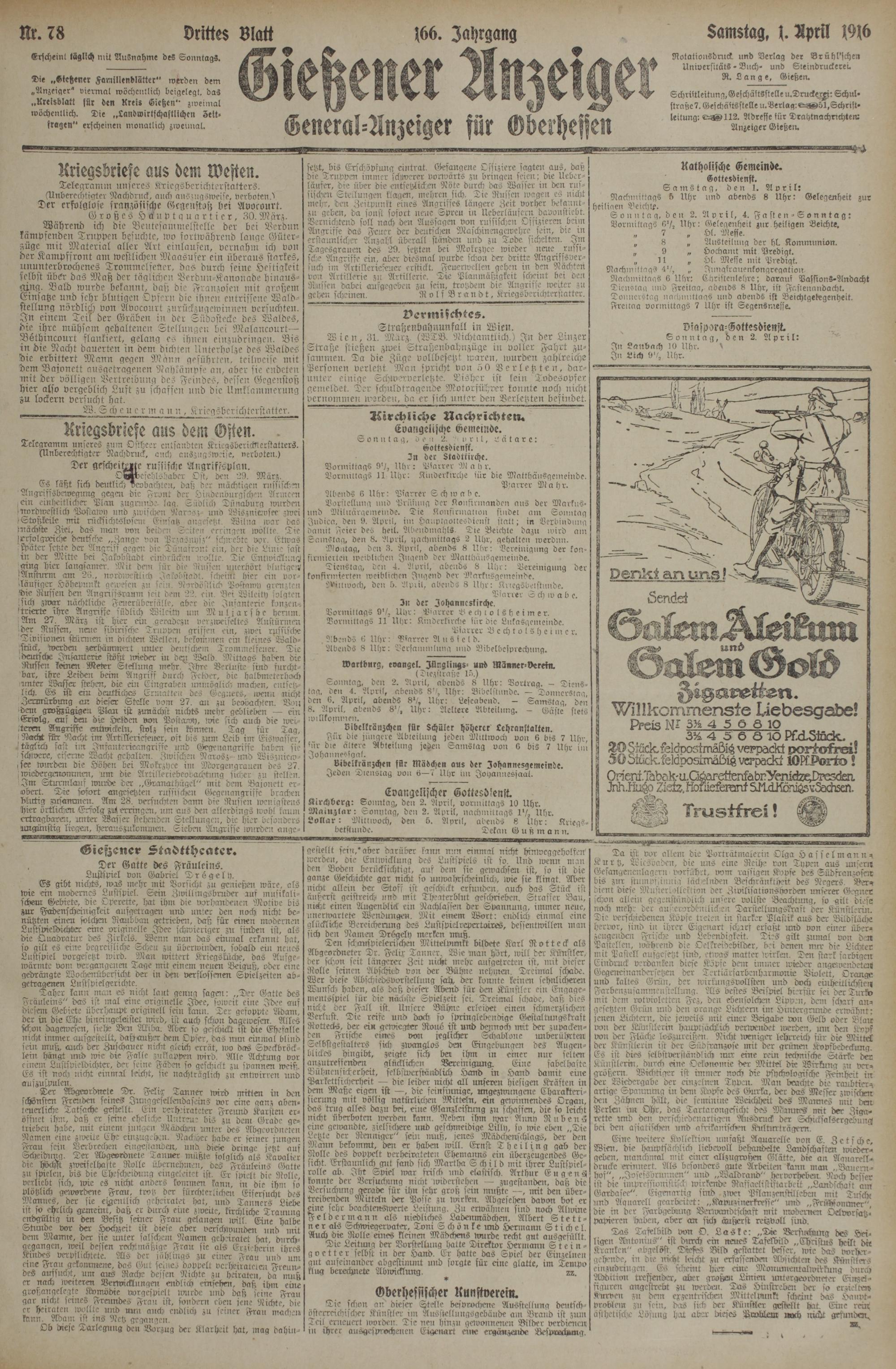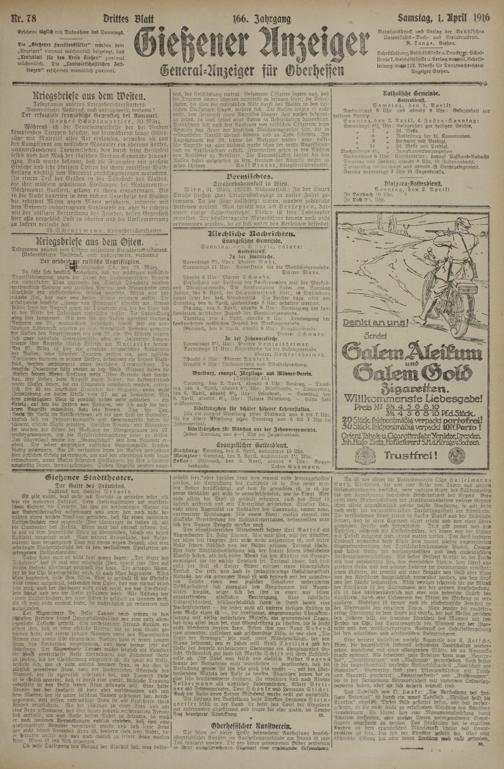 Regionale Zeitungen aus der Zeit des Ersten Weltkrieges