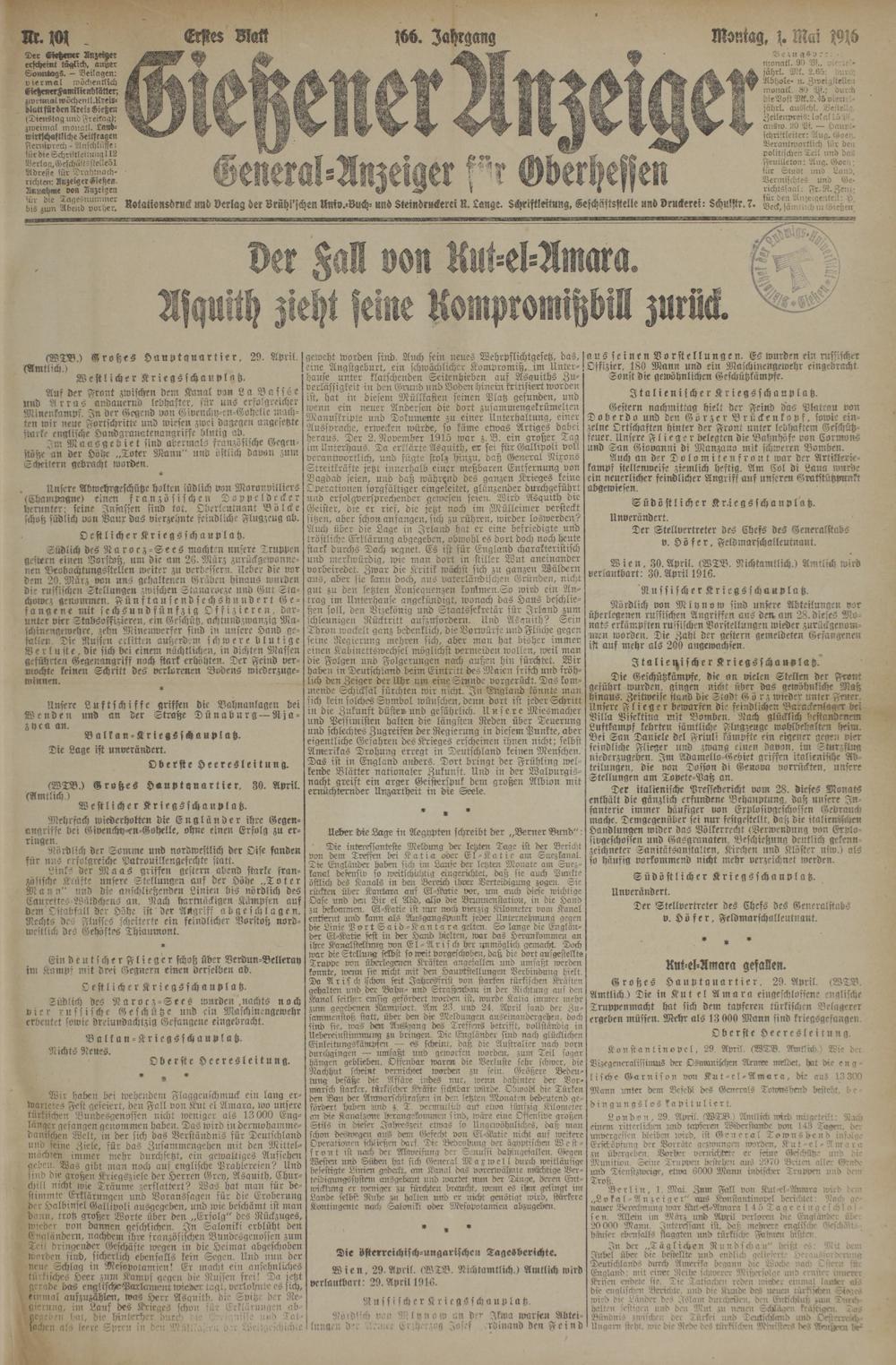 (1.5.1916) Erstes Blatt