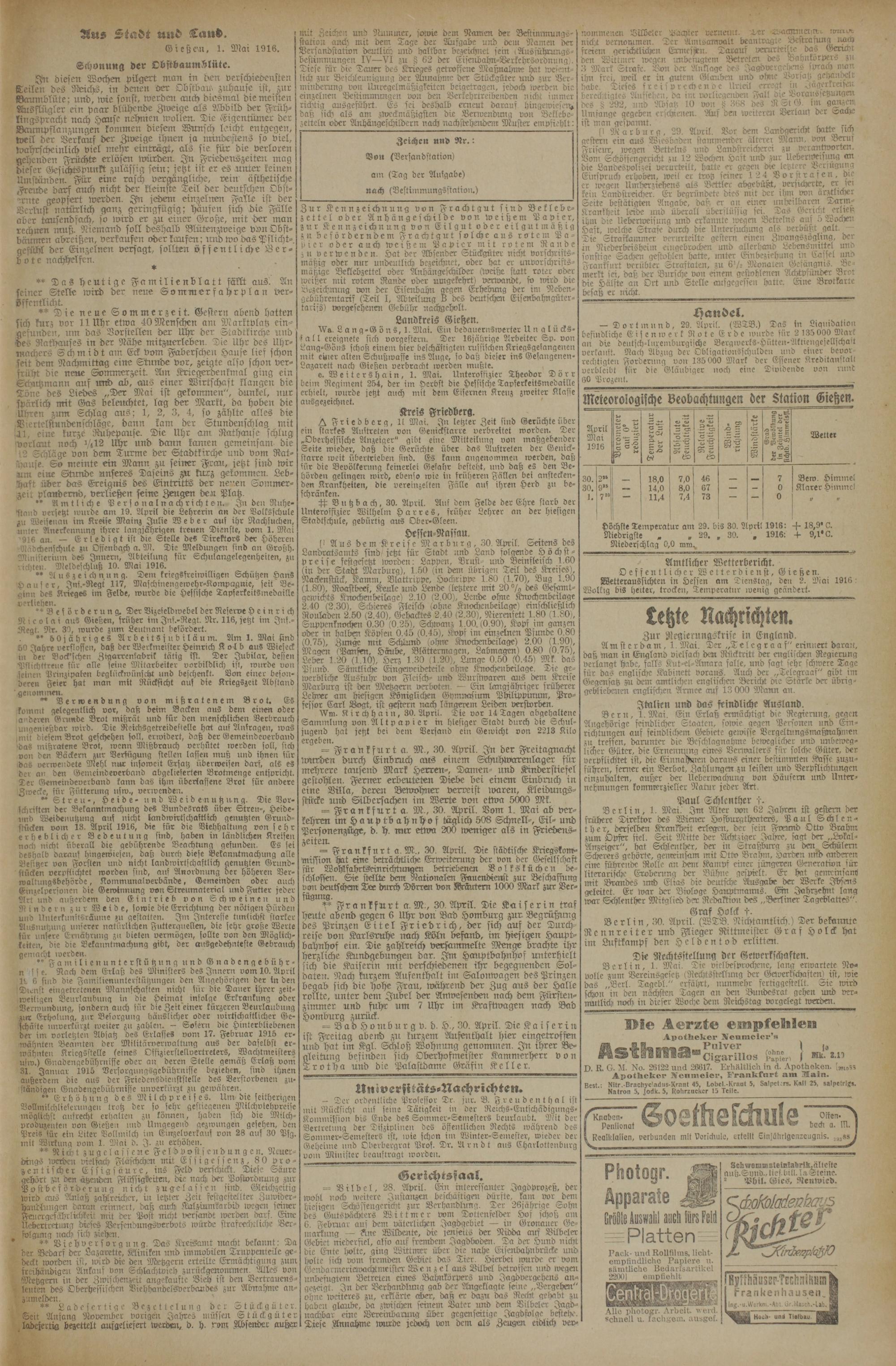 (1.5.1916) Erstes Blatt