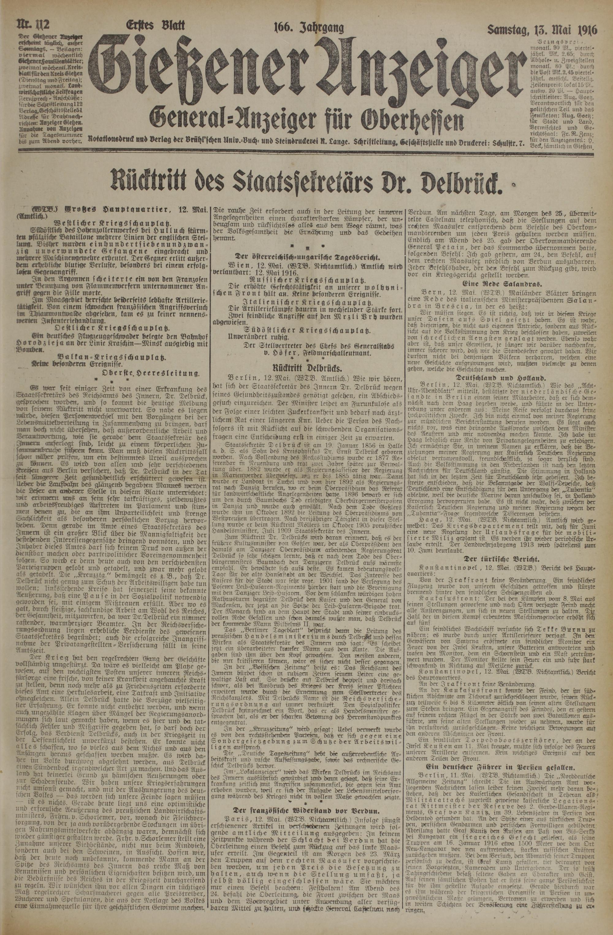 (13.5.1916) Erstes Blatt