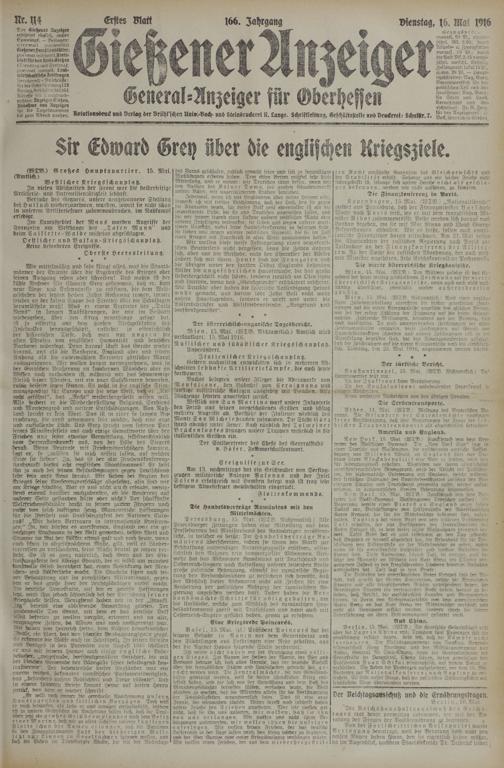 Regionale Zeitungen aus der Zeit des Ersten Weltkrieges