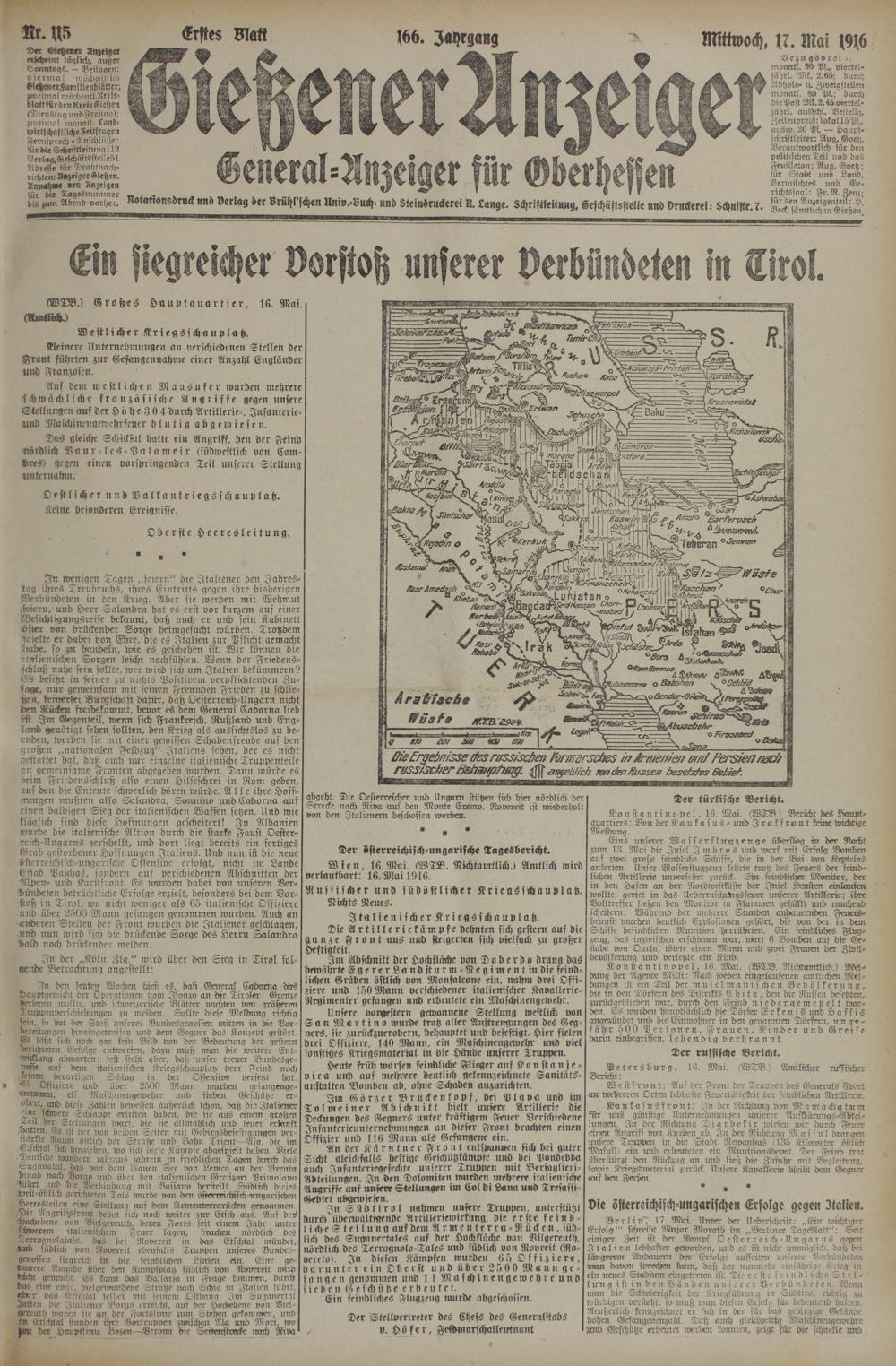 Regionale Zeitungen aus der Zeit des Ersten Weltkrieges