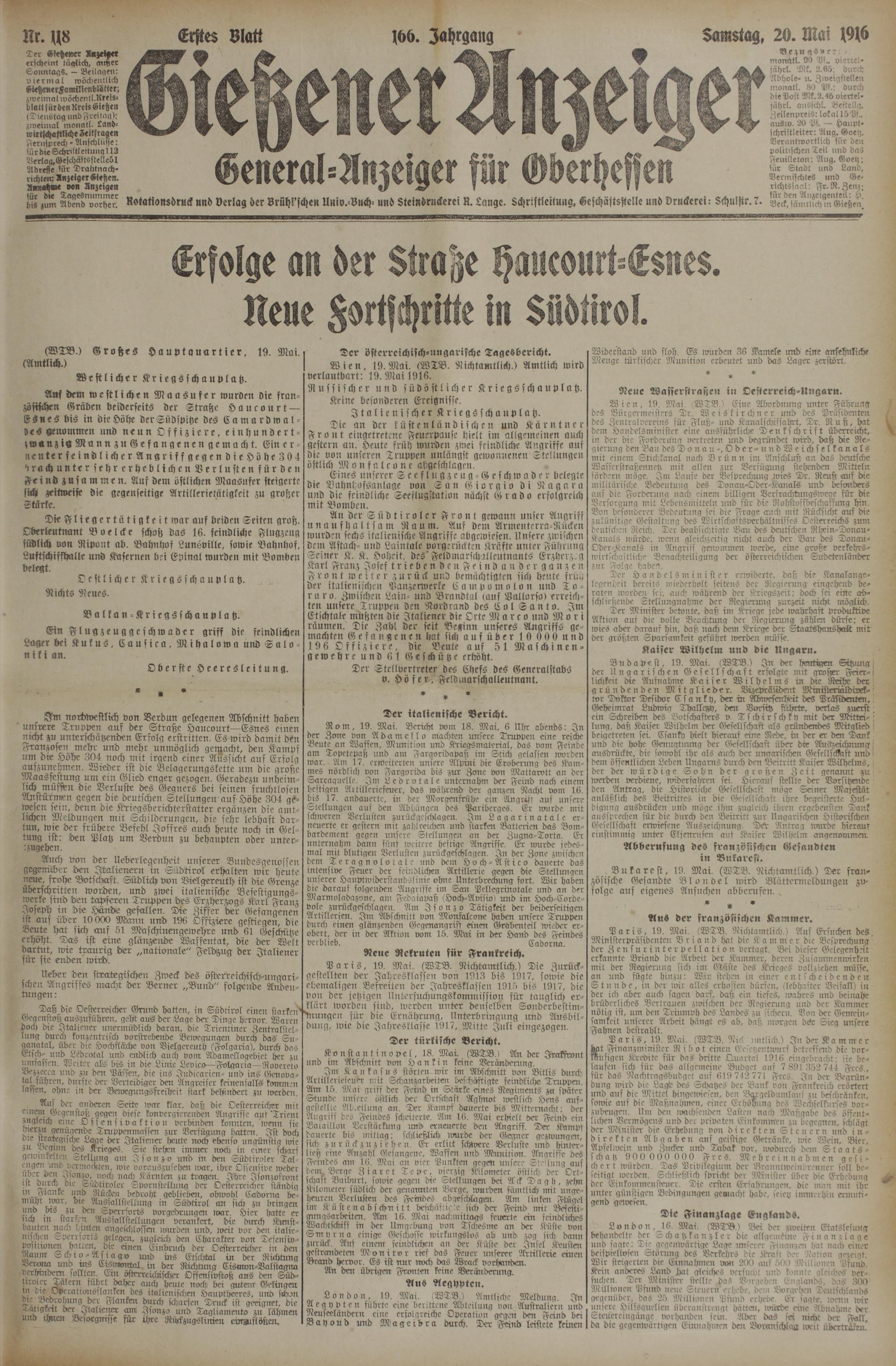 Regionale Zeitungen aus der Zeit des Ersten Weltkrieges