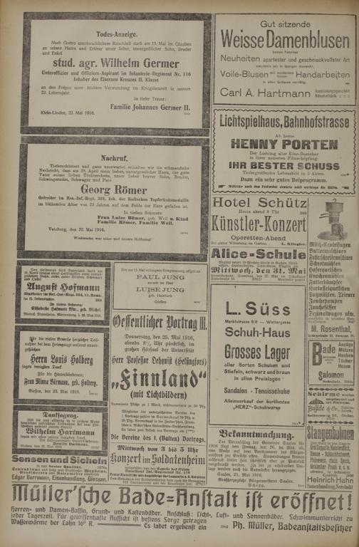 Regionale Zeitungen aus der Zeit des Ersten Weltkrieges