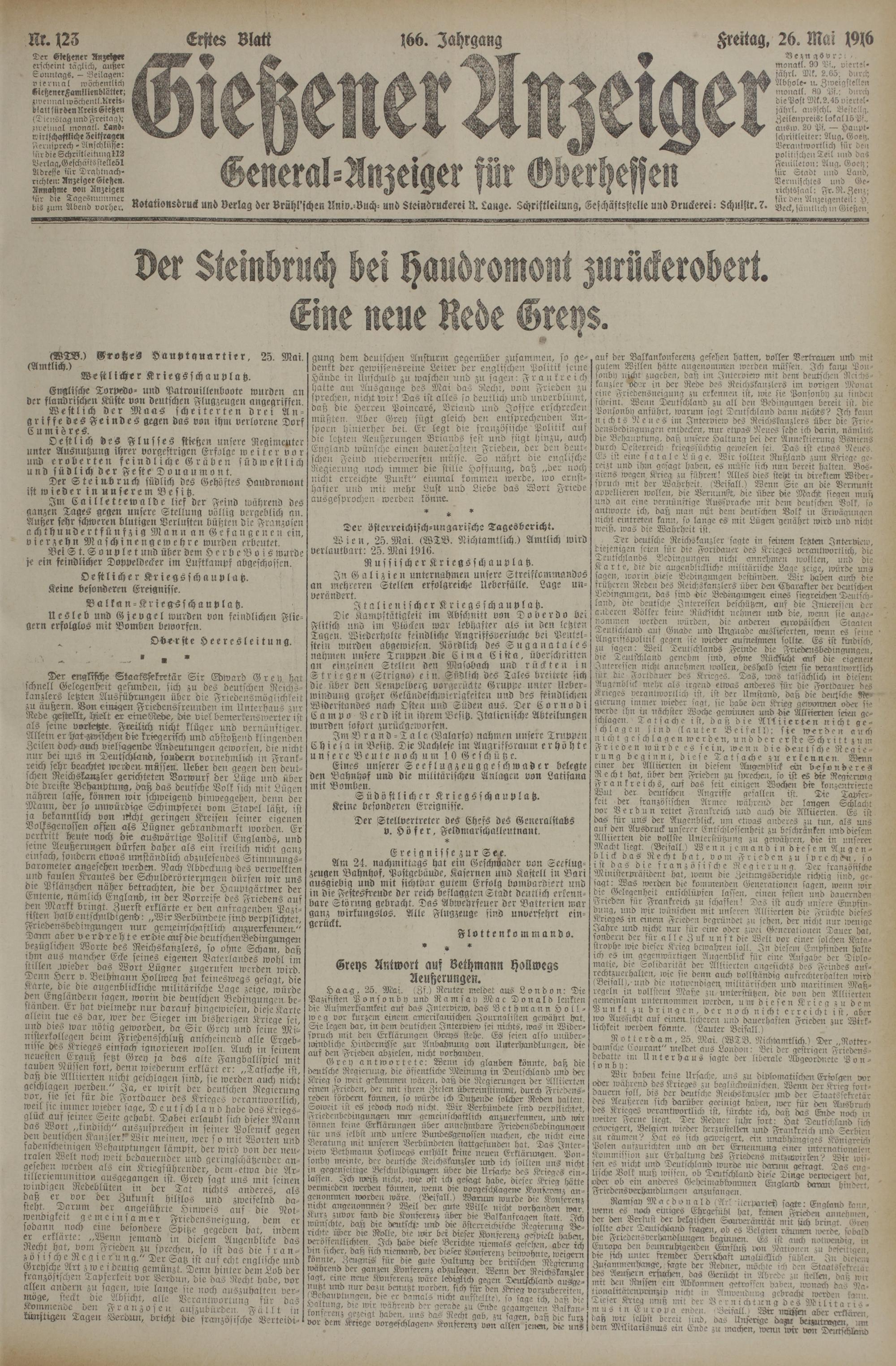 (26.5.1916) Erstes Blatt