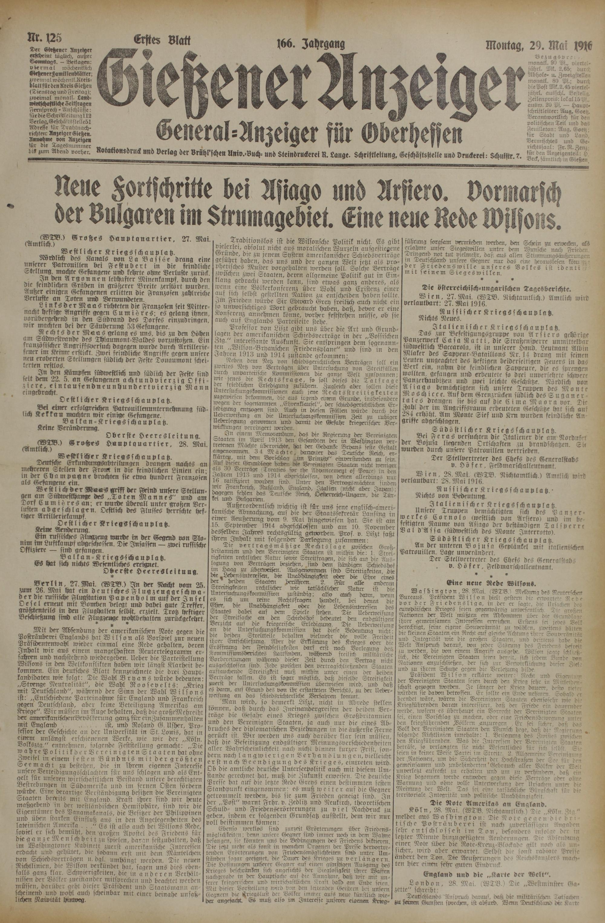 (29.5.1916) Erstes Blatt