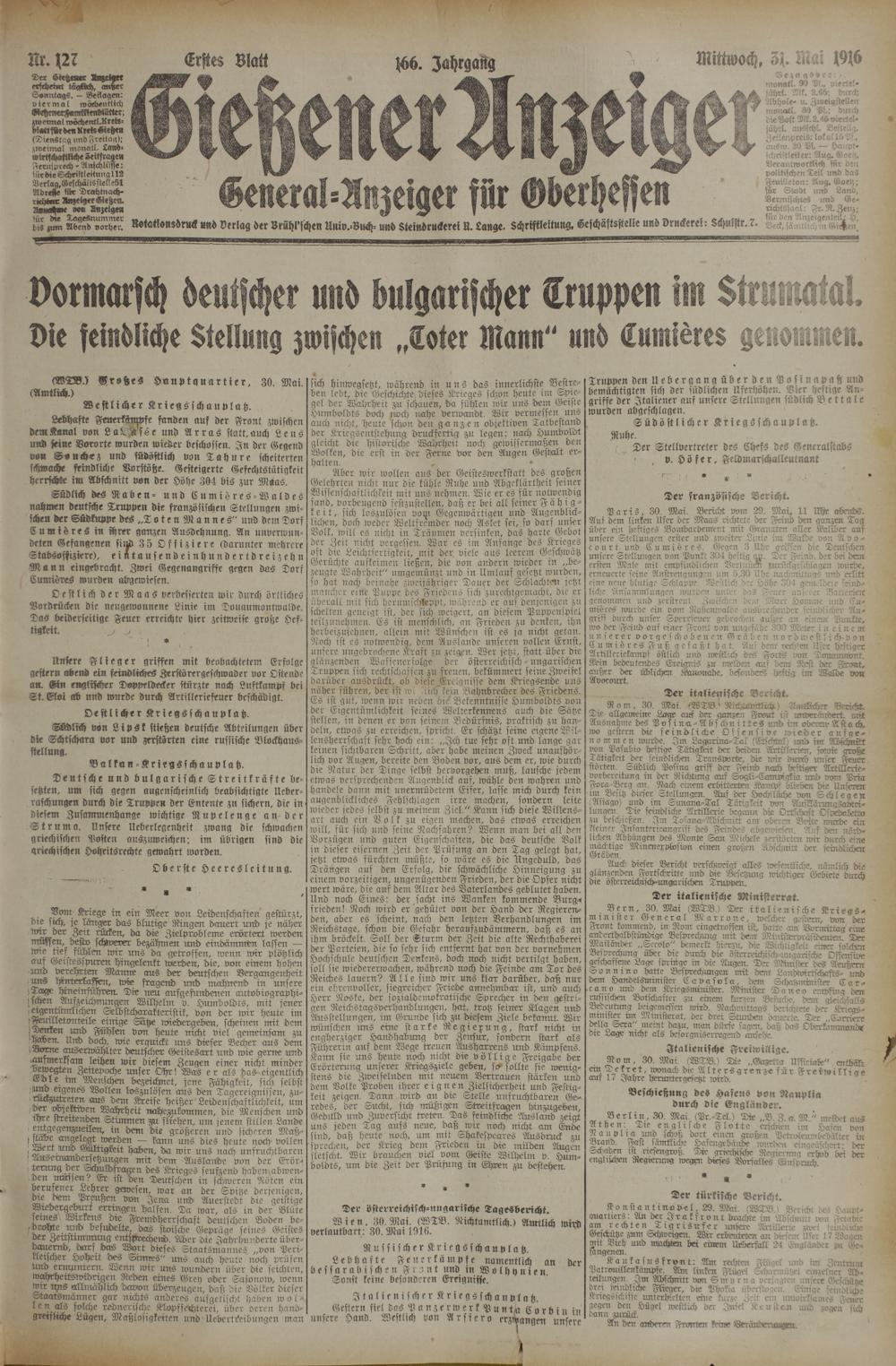 (31.5.1916) Erstes Blatt