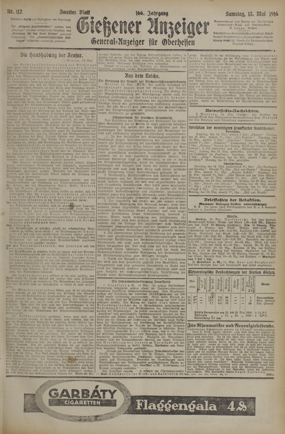 Regionale Zeitungen aus der Zeit des Ersten Weltkrieges