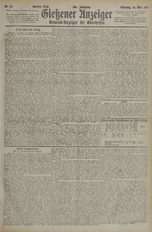 Regionale Zeitungen aus der Zeit des Ersten Weltkrieges