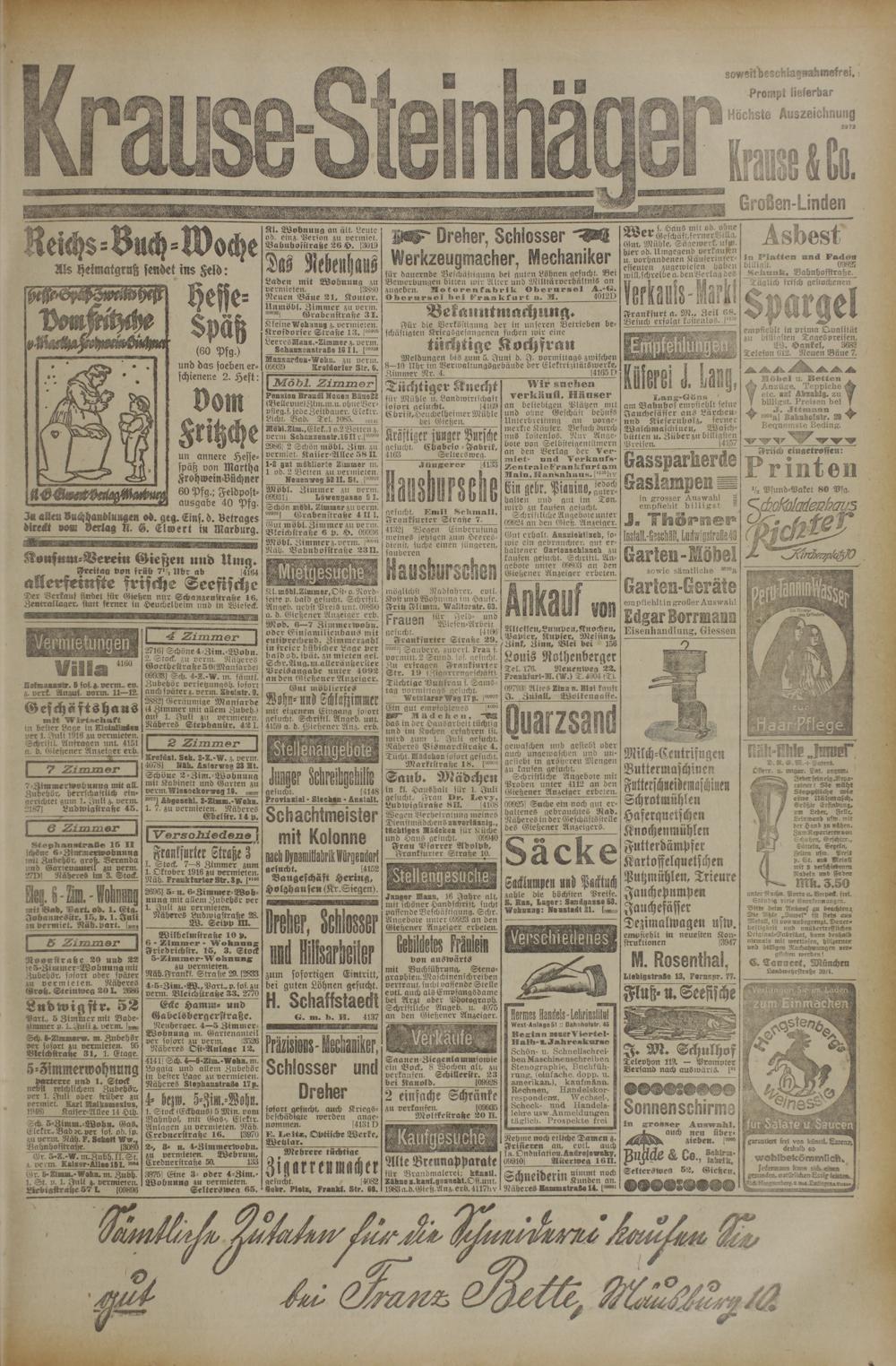 (31.5.1916) Zweites Blatt
