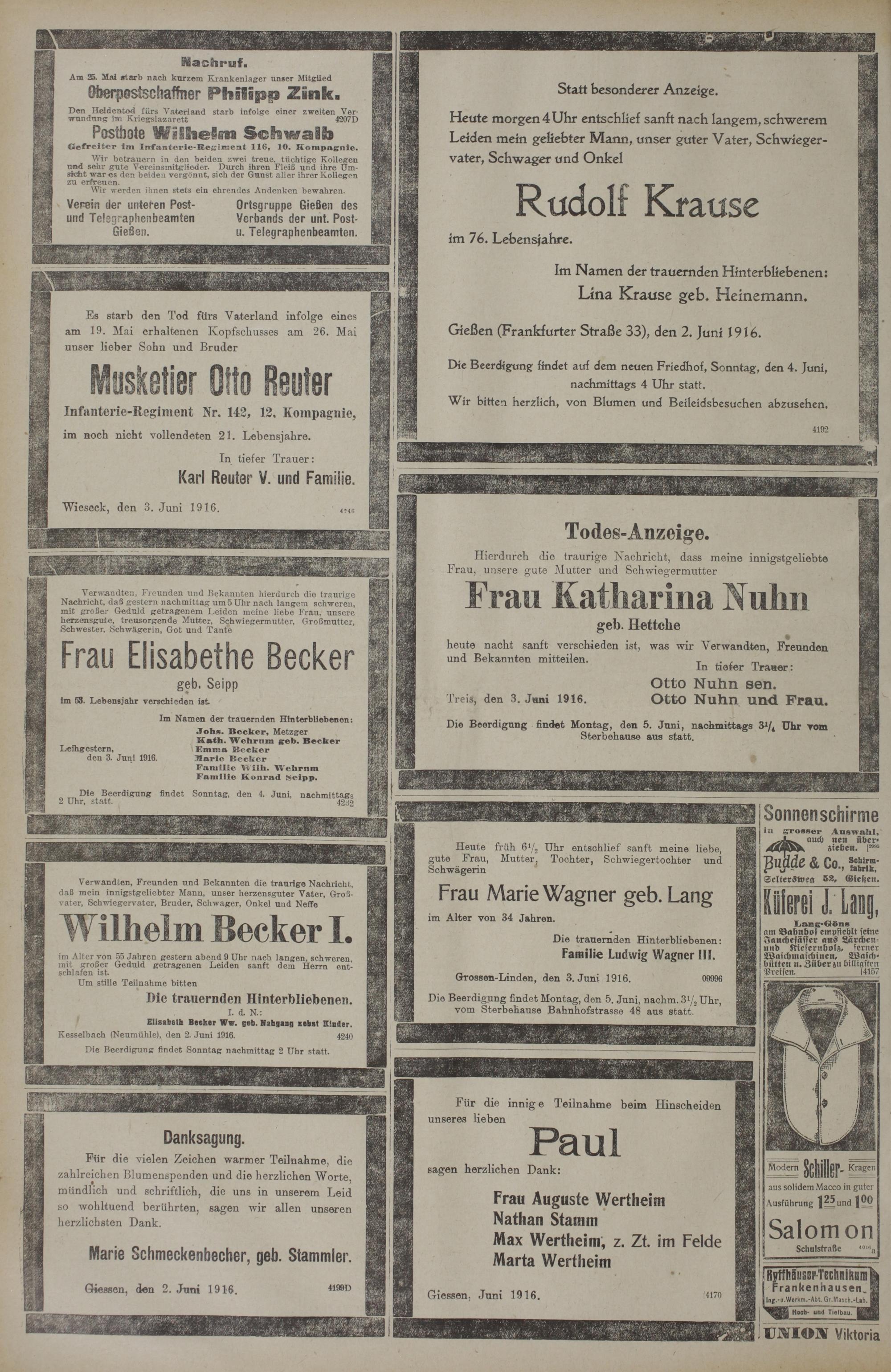 (3.6.1916) Erstes Blatt