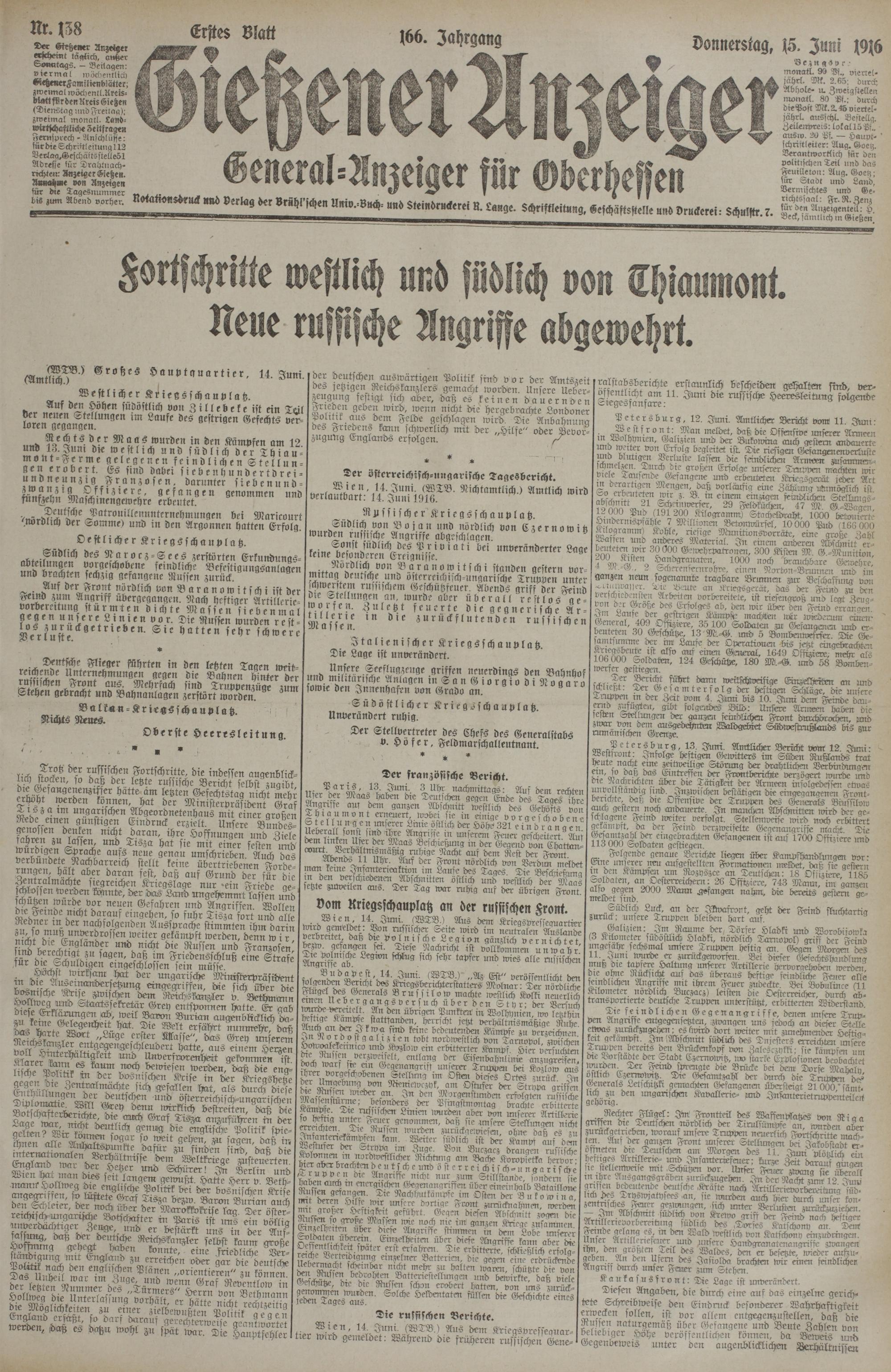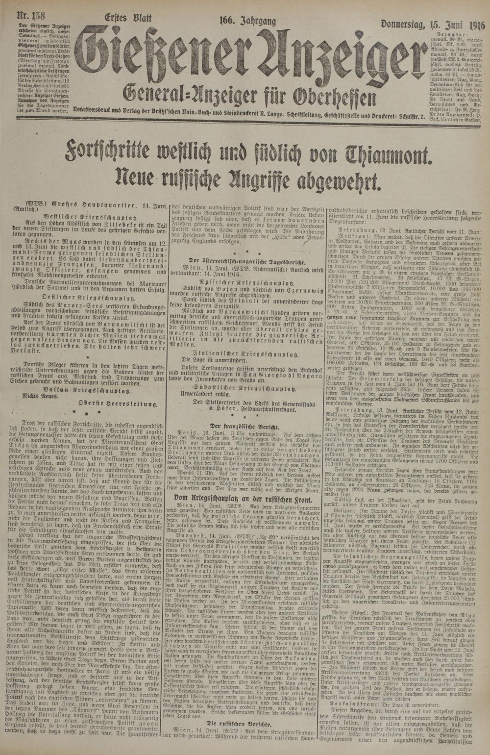 (15.6.1916) Erstes Blatt