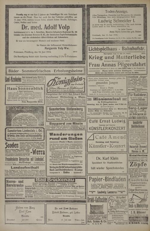 Regionale Zeitungen aus der Zeit des Ersten Weltkrieges