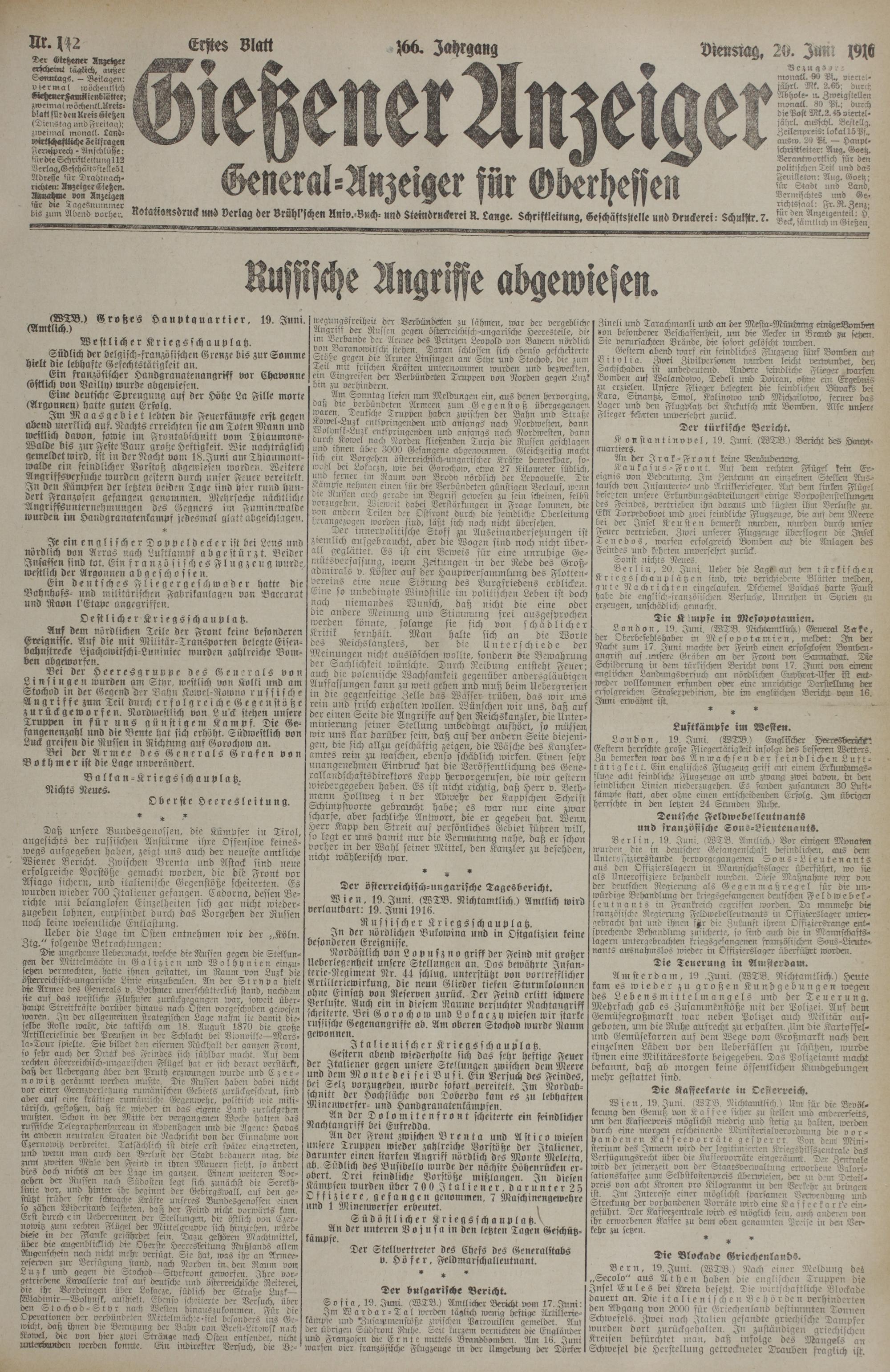 (20.6.1916) Erstes Blatt