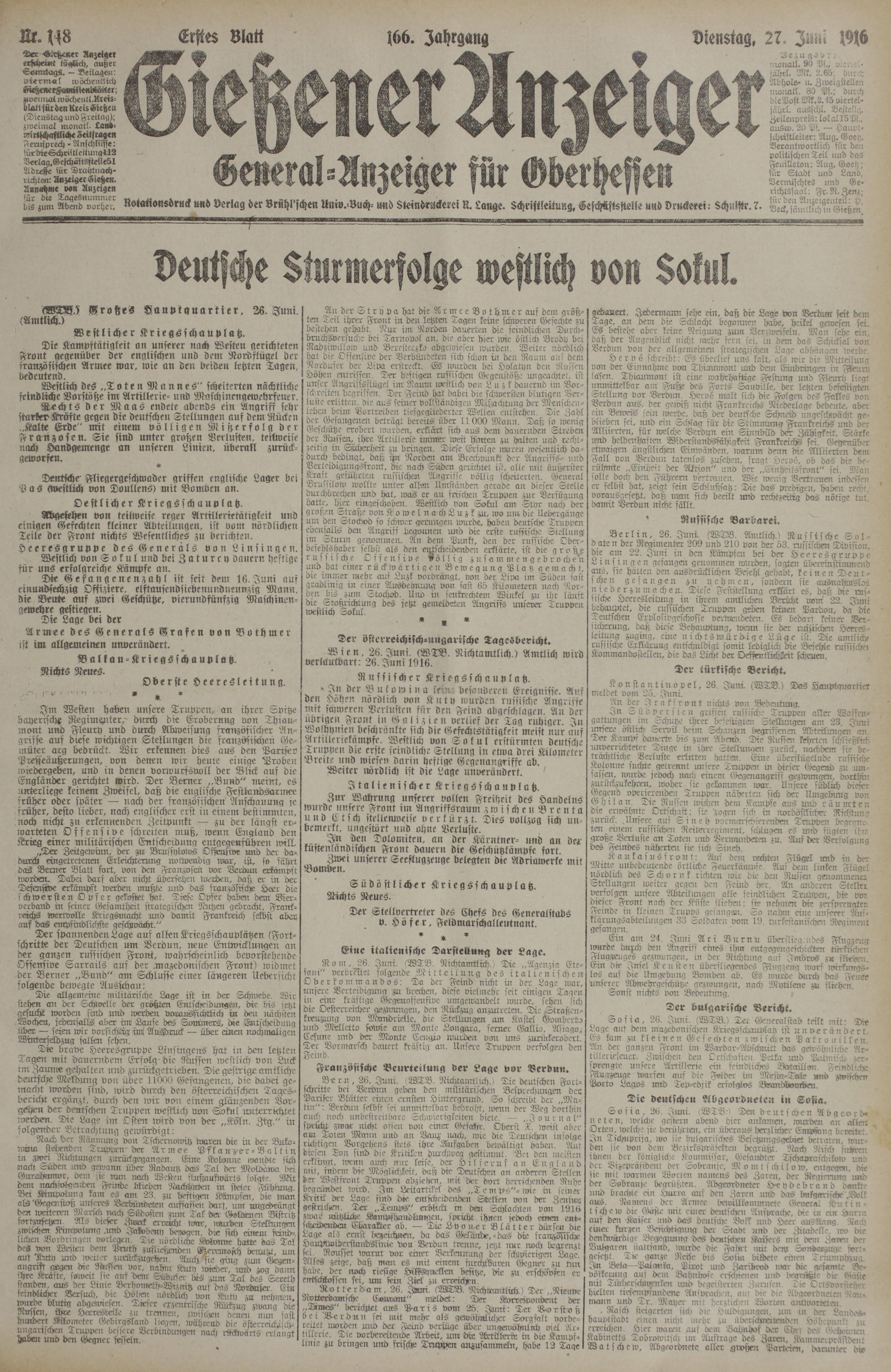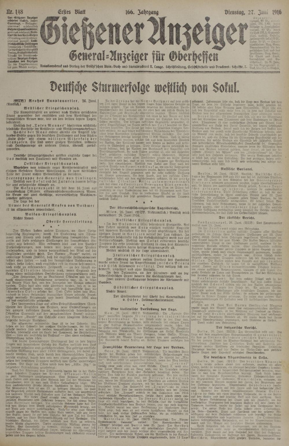 (27.6.1916) Erstes Blatt