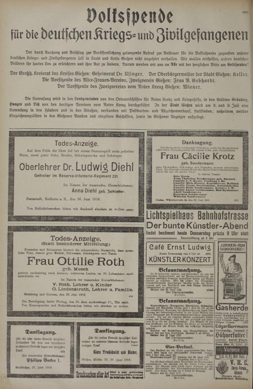 Regionale Zeitungen aus der Zeit des Ersten Weltkrieges