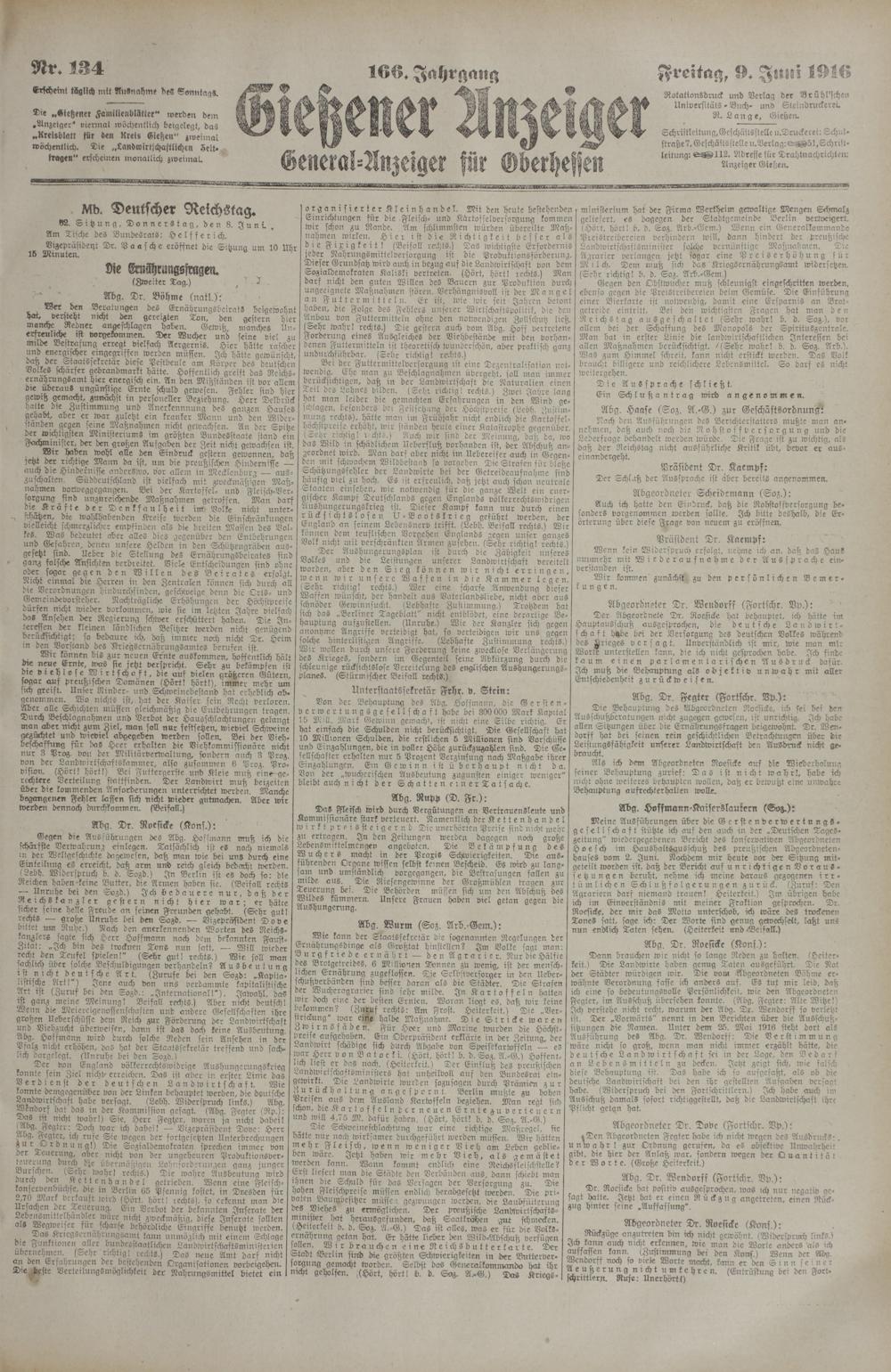 Gießener Anzeiger. 1868-1943