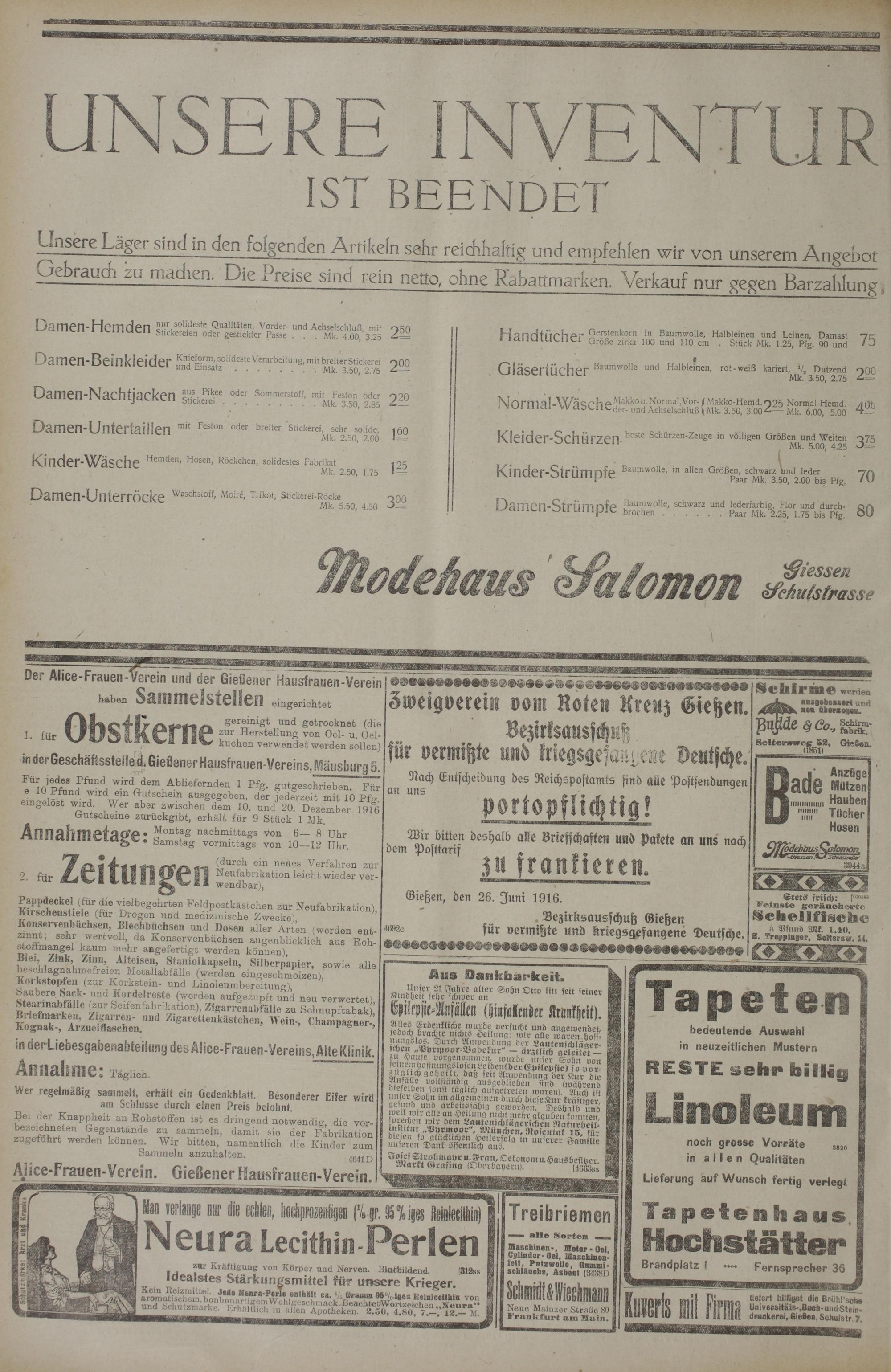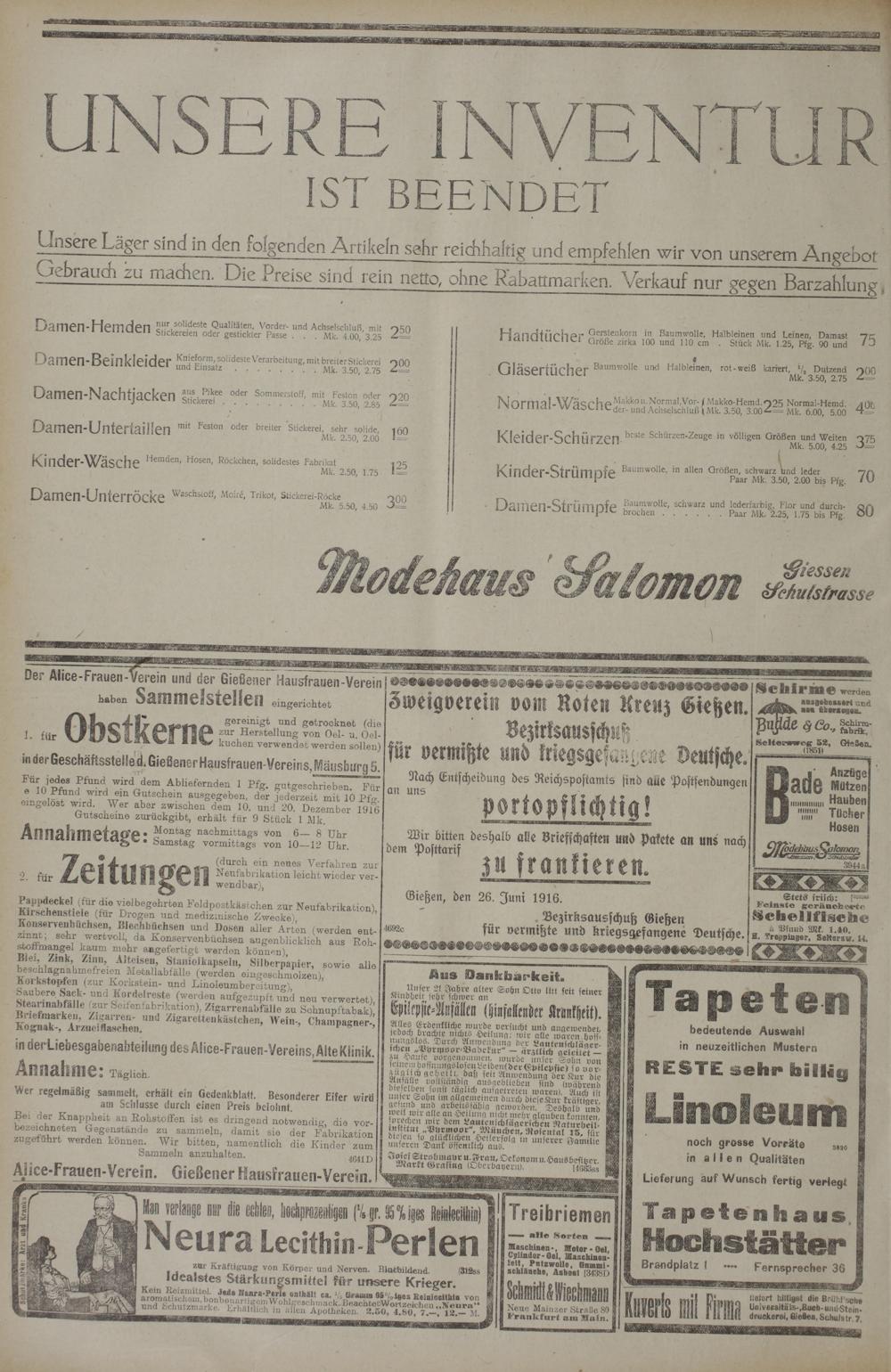 Regionale Zeitungen aus der Zeit des Ersten Weltkrieges