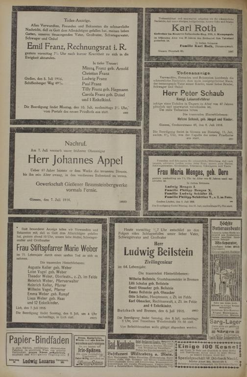 Regionale Zeitungen aus der Zeit des Ersten Weltkrieges