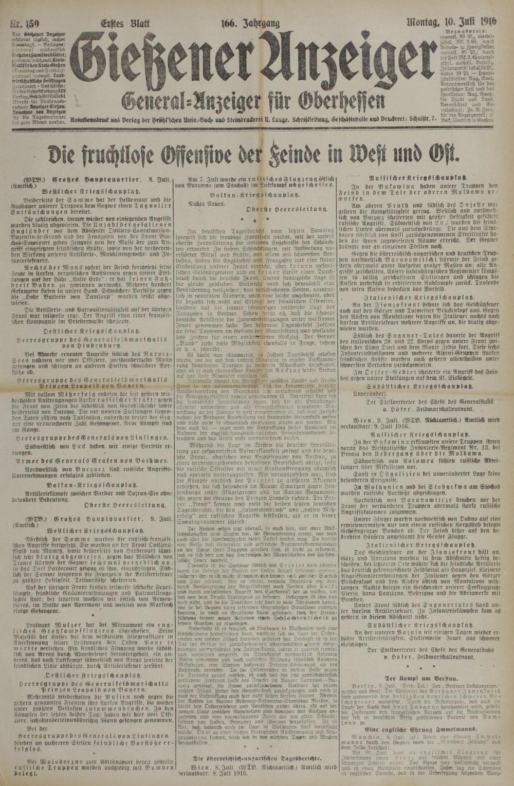 (10.7.1916) Erstes Blatt
