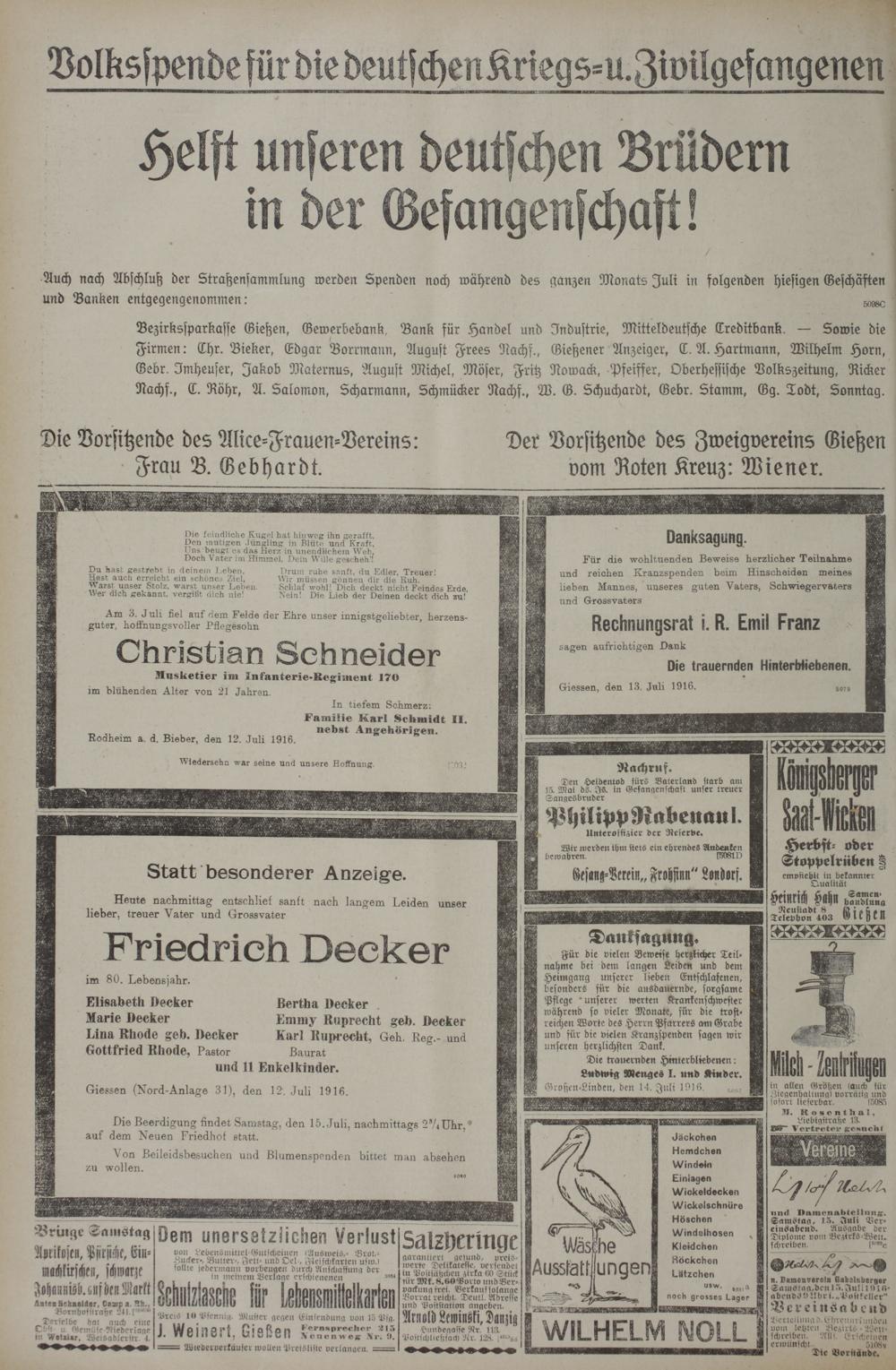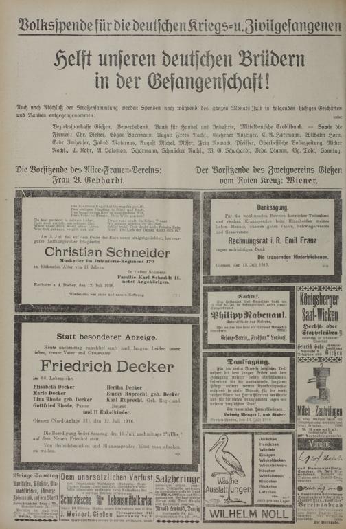Regionale Zeitungen aus der Zeit des Ersten Weltkrieges