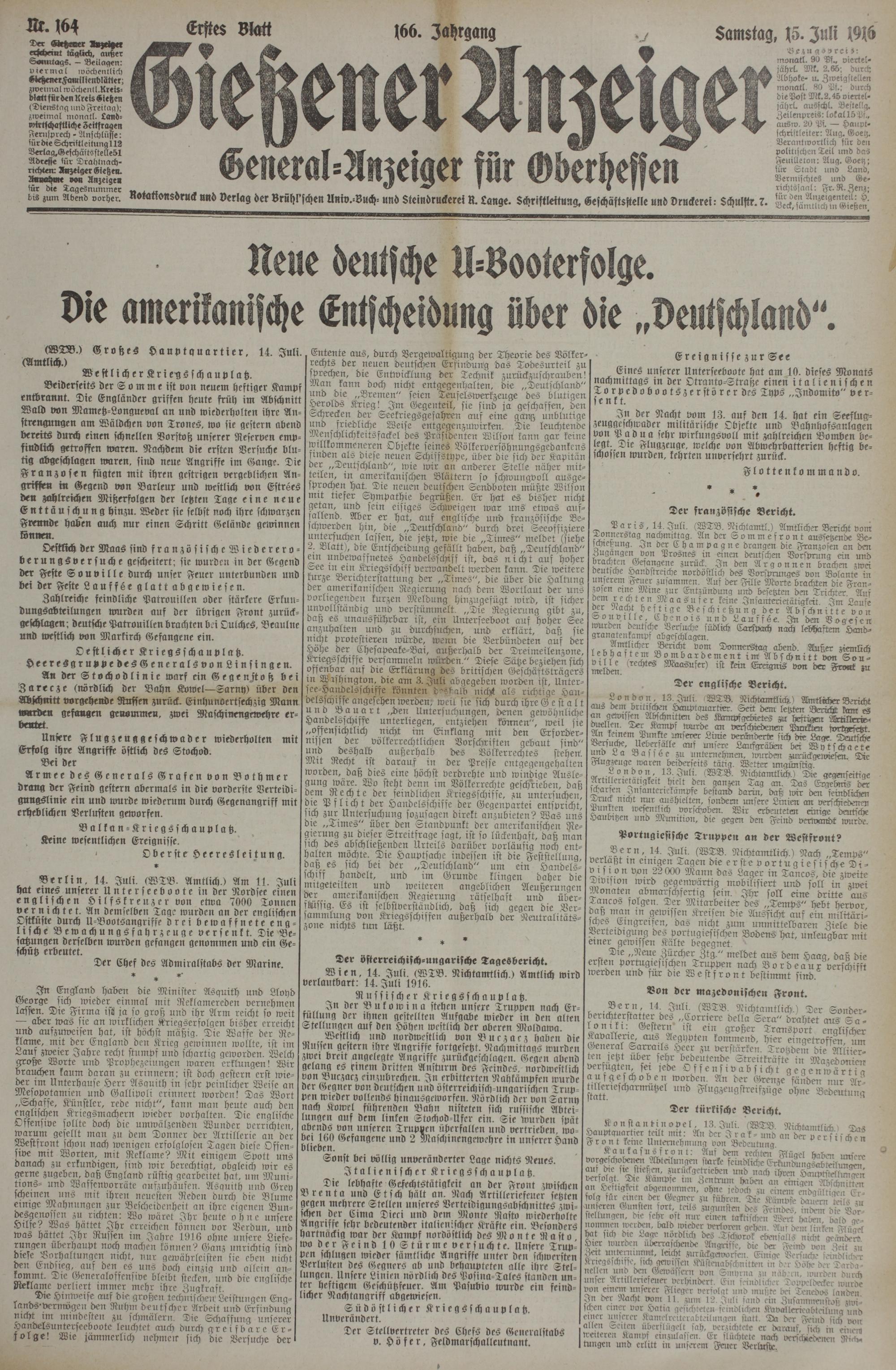 (15.7.1916) Erstes Blatt