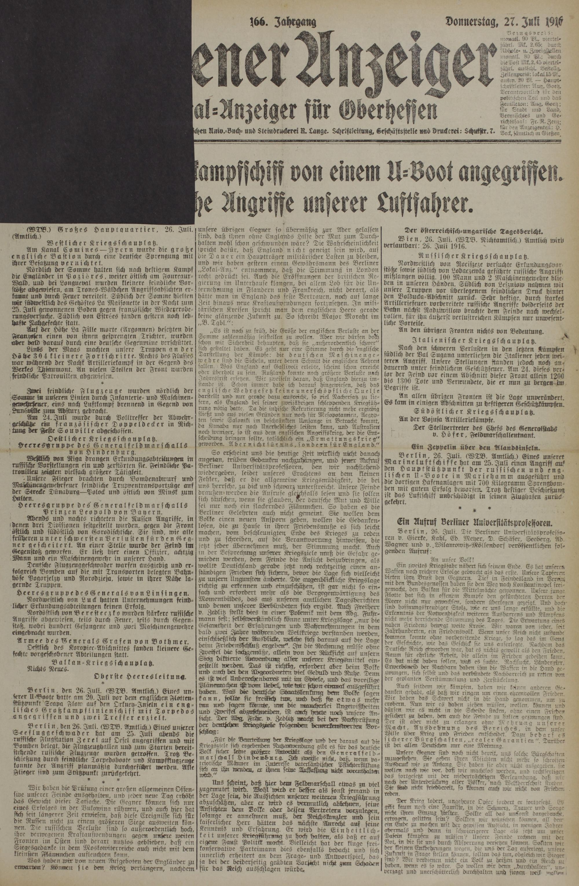 (27.7.1916) Erstes Blatt