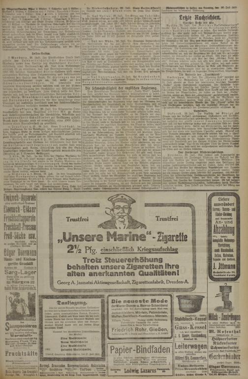 Regionale Zeitungen aus der Zeit des Ersten Weltkrieges