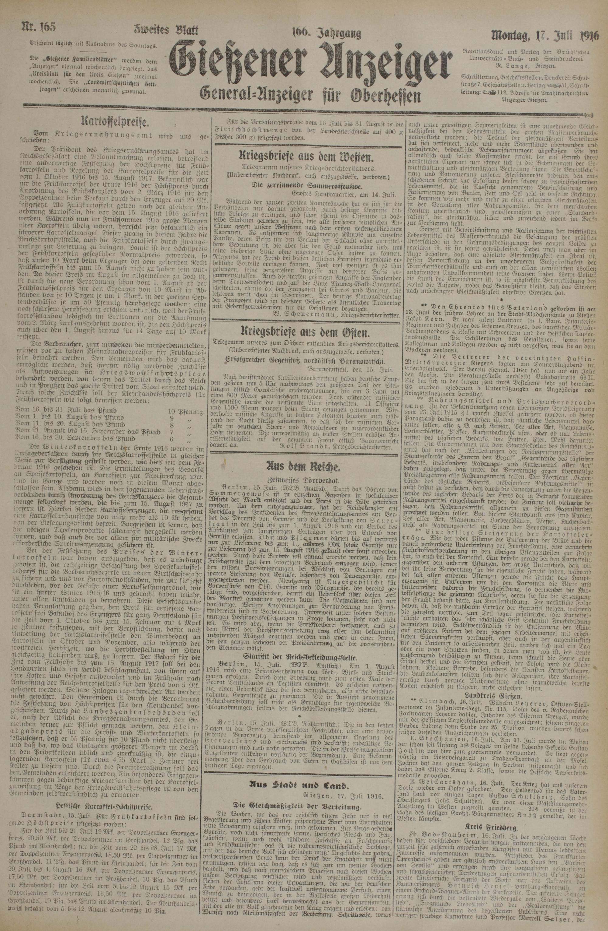 Regionale Zeitungen aus der Zeit des Ersten Weltkrieges
