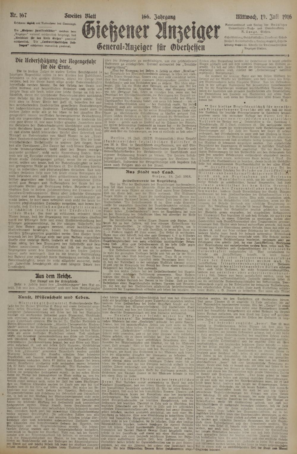 Regionale Zeitungen aus der Zeit des Ersten Weltkrieges