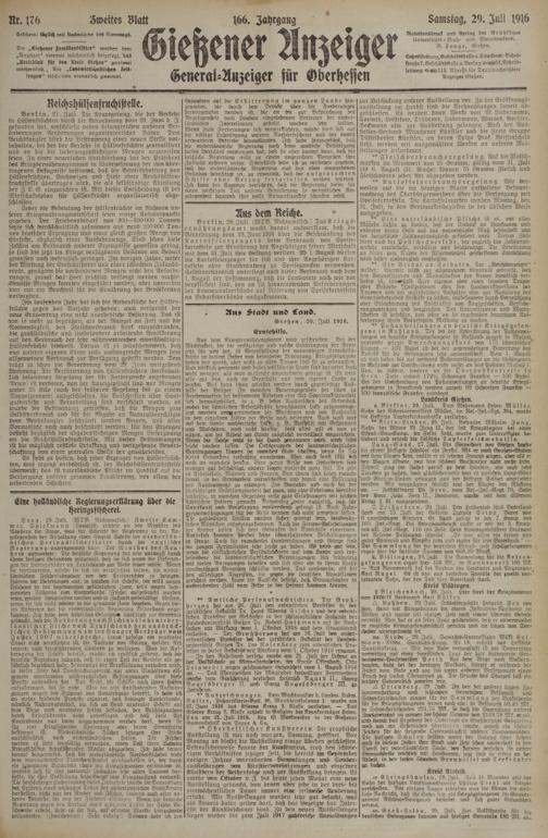 Regionale Zeitungen aus der Zeit des Ersten Weltkrieges