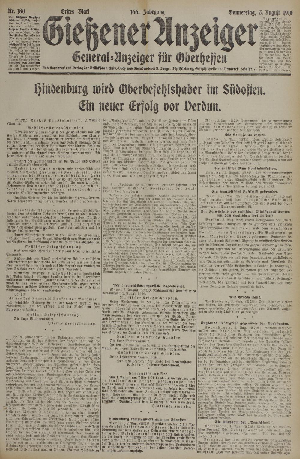 Der Erste Weltkrieg im Spiegel hessischer Regionalzeitungen