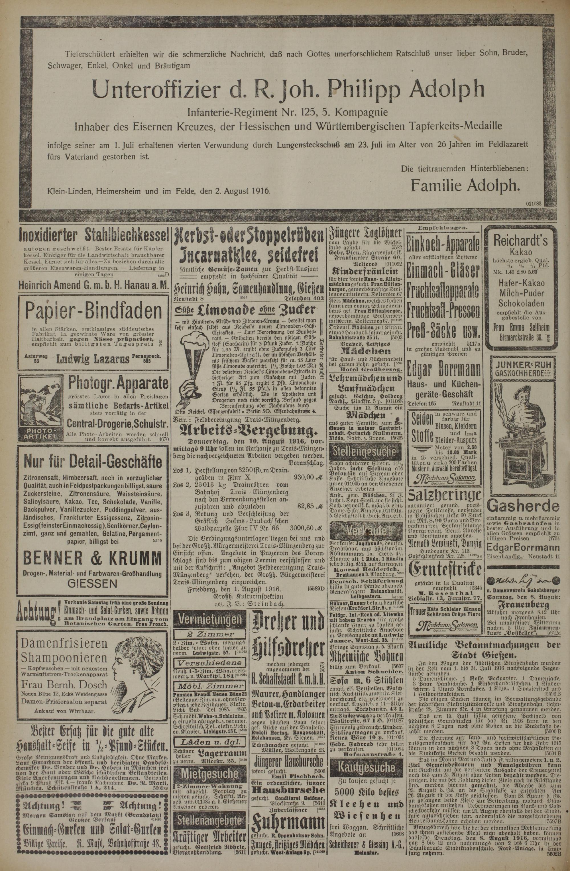 (4.8.1916) Erstes Blatt