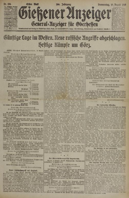 Regionale Zeitungen aus der Zeit des Ersten Weltkrieges