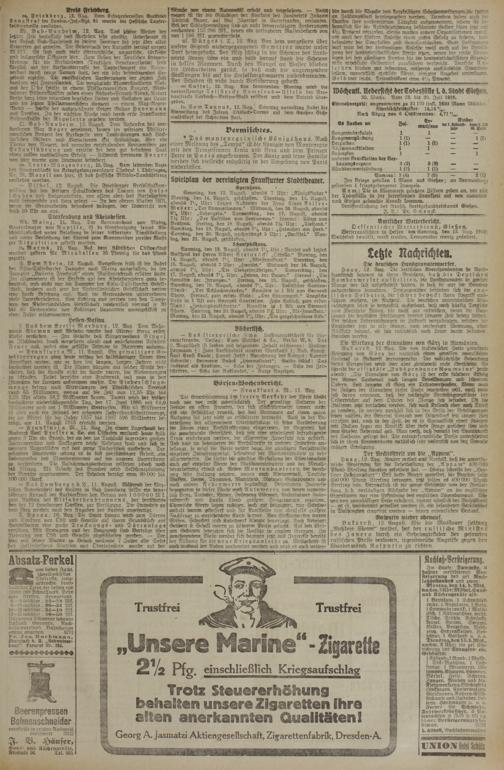 Regionale Zeitungen aus der Zeit des Ersten Weltkrieges