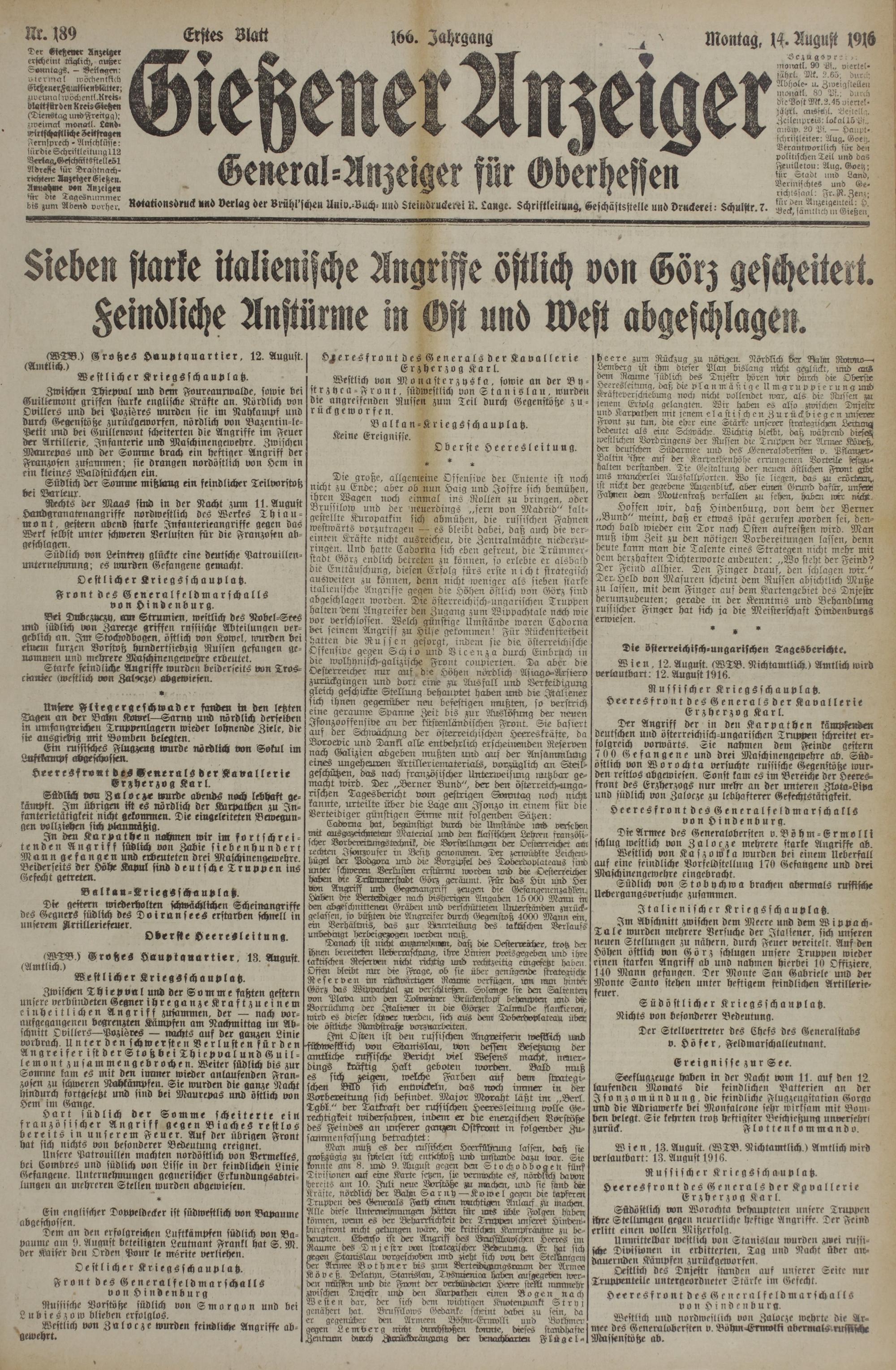 Der Erste Weltkrieg im Spiegel hessischer Regionalzeitungen