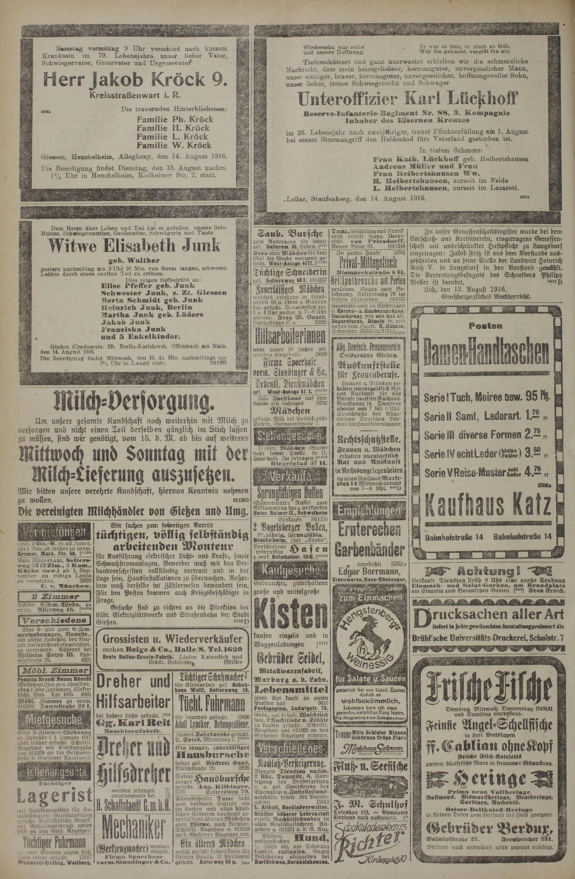 (13.8.1916) Erstes Blatt