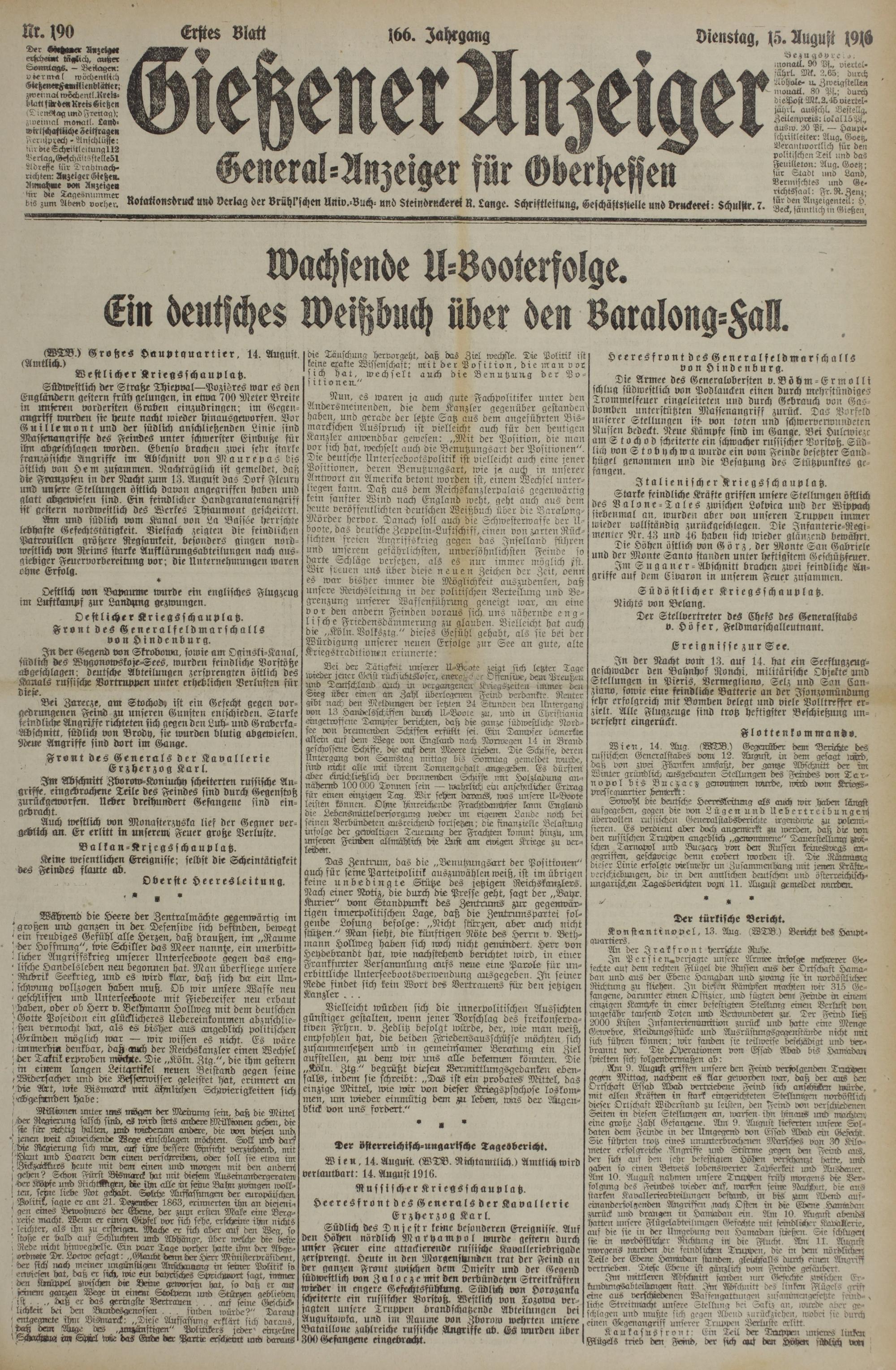 Regionale Zeitungen aus der Zeit des Ersten Weltkrieges