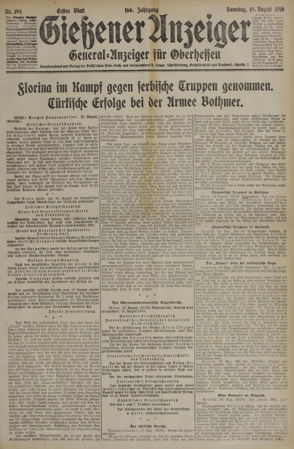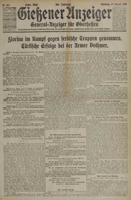 Regionale Zeitungen aus der Zeit des Ersten Weltkrieges