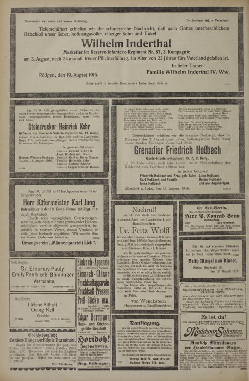 Regionale Zeitungen aus der Zeit des Ersten Weltkrieges