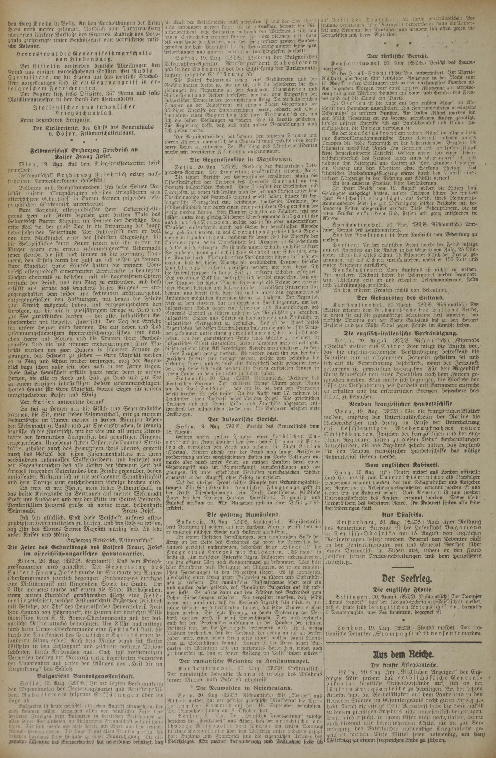 (21.8.1916) Erstes Blatt