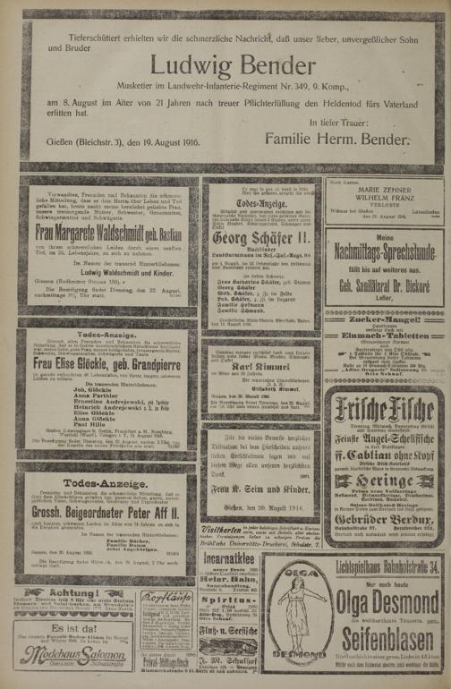 Regionale Zeitungen aus der Zeit des Ersten Weltkrieges
