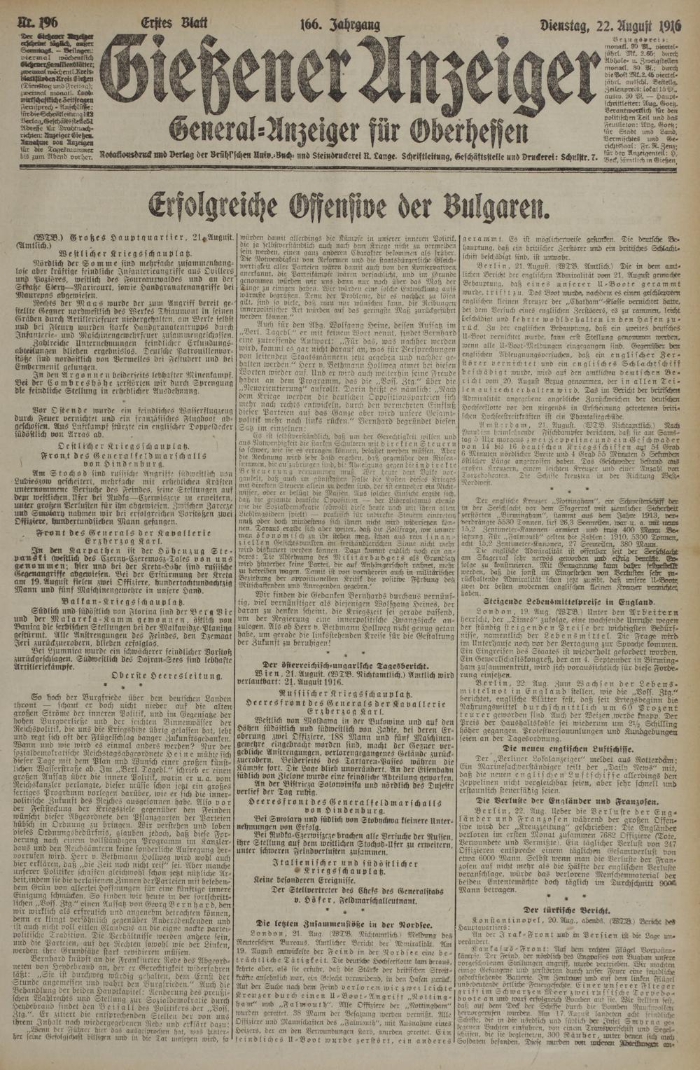 Regionale Zeitungen aus der Zeit des Ersten Weltkrieges