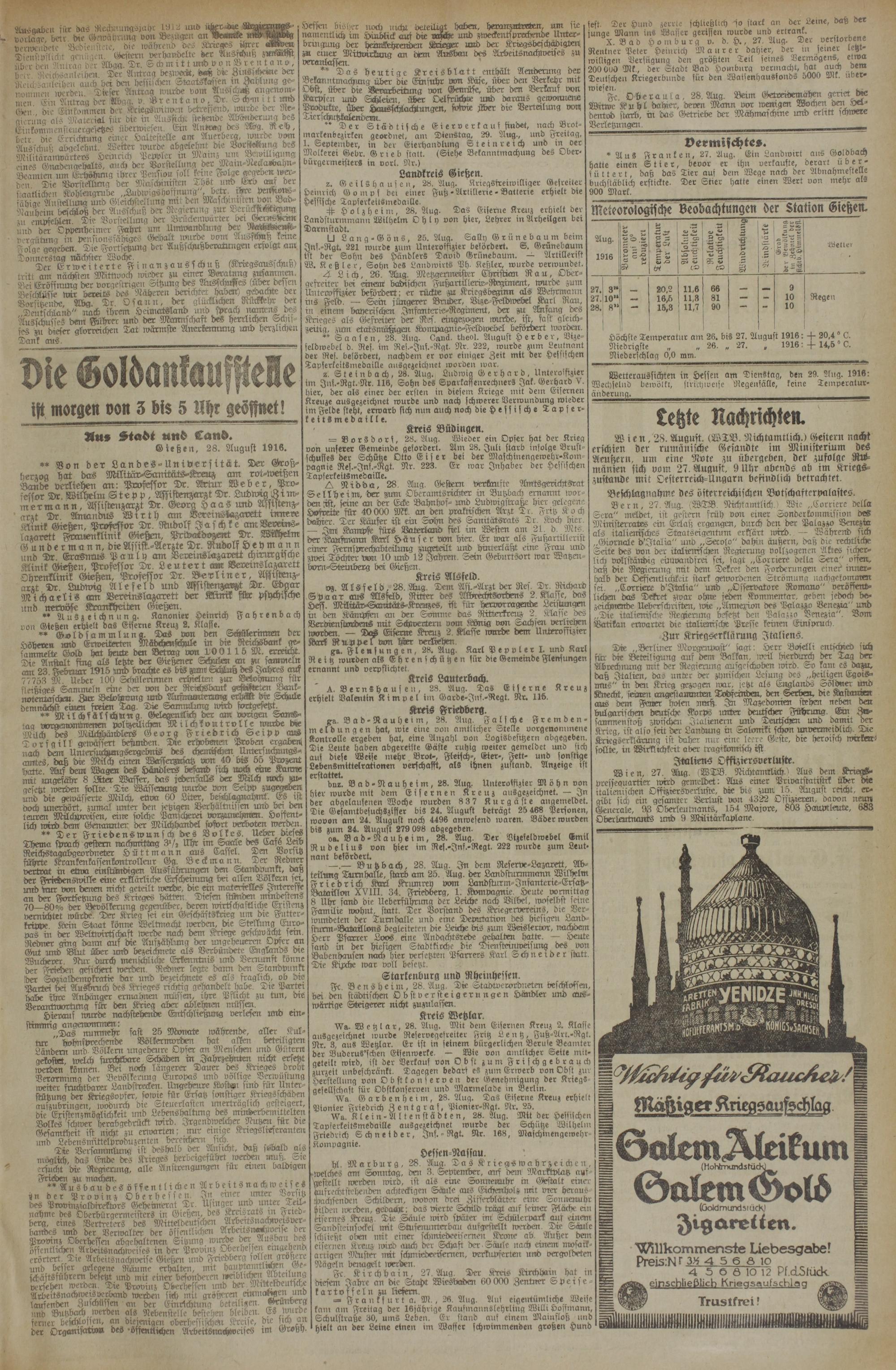 (28.8.1916) Erstes Blatt