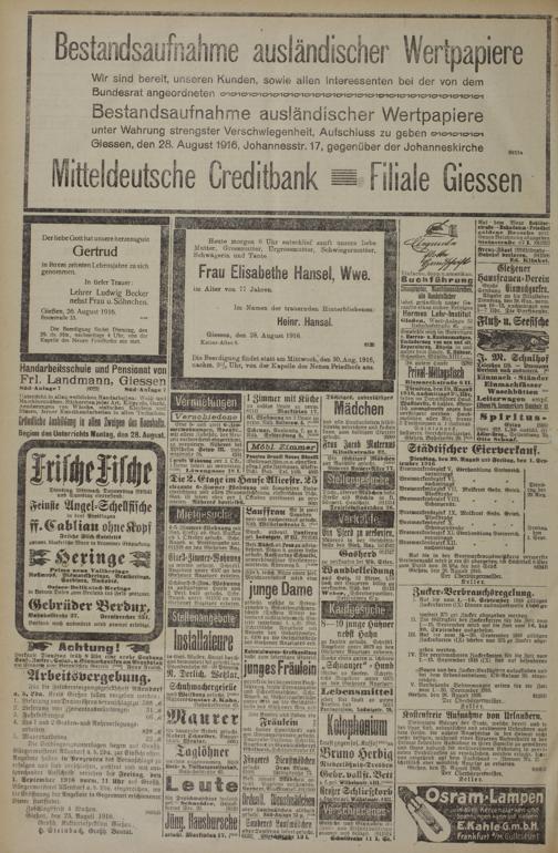 Regionale Zeitungen aus der Zeit des Ersten Weltkrieges