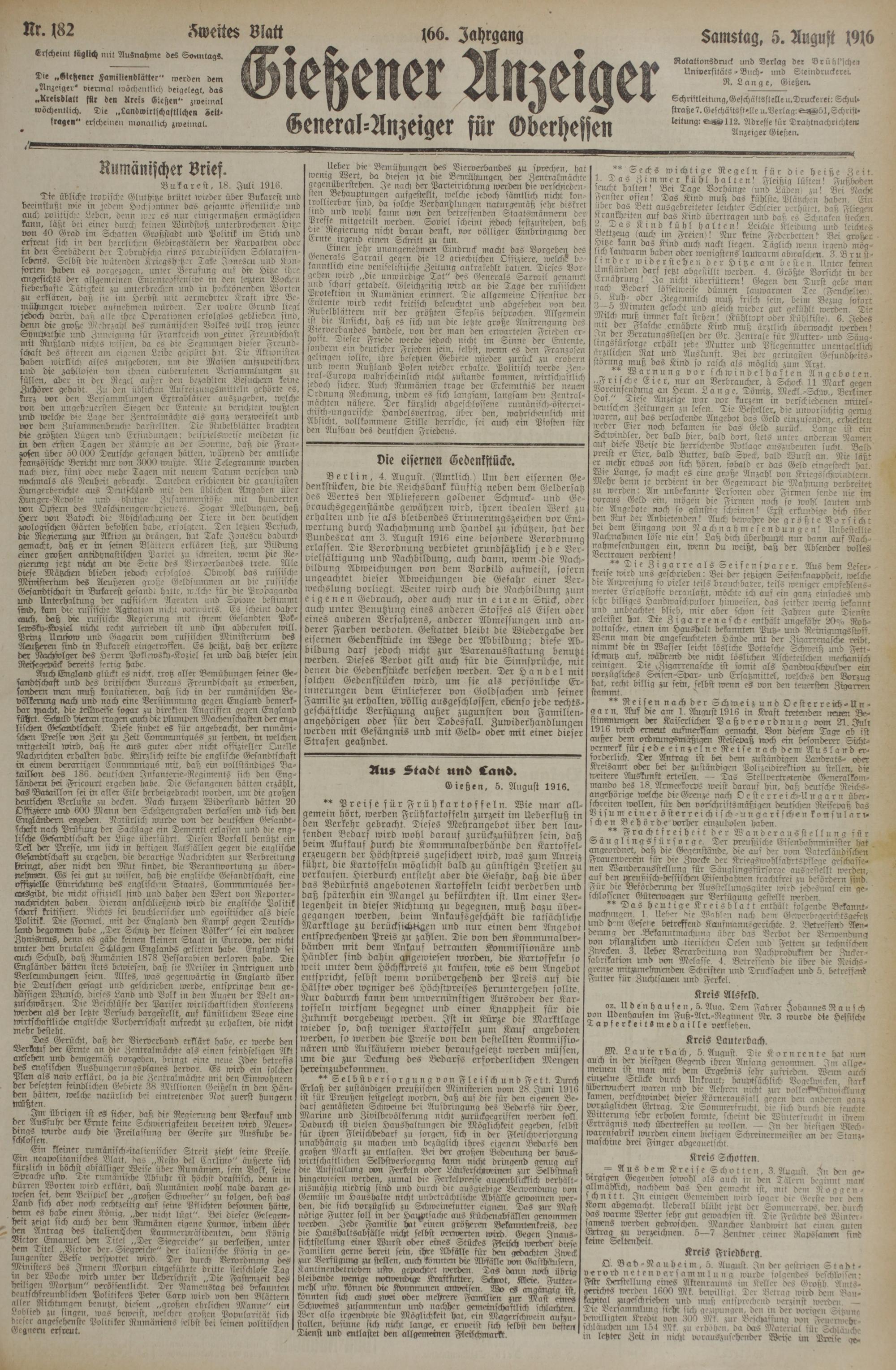 Regionale Zeitungen aus der Zeit des Ersten Weltkrieges