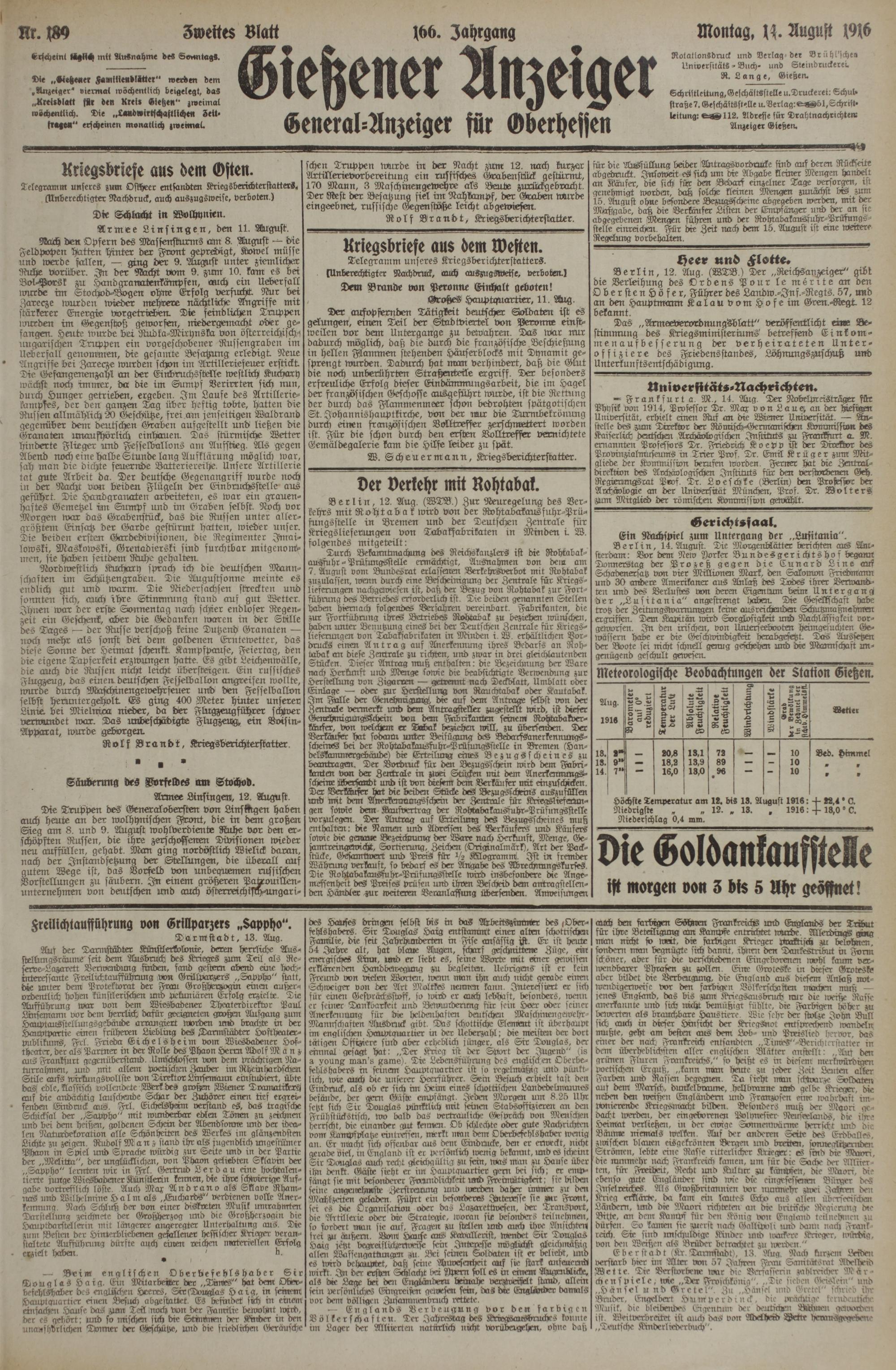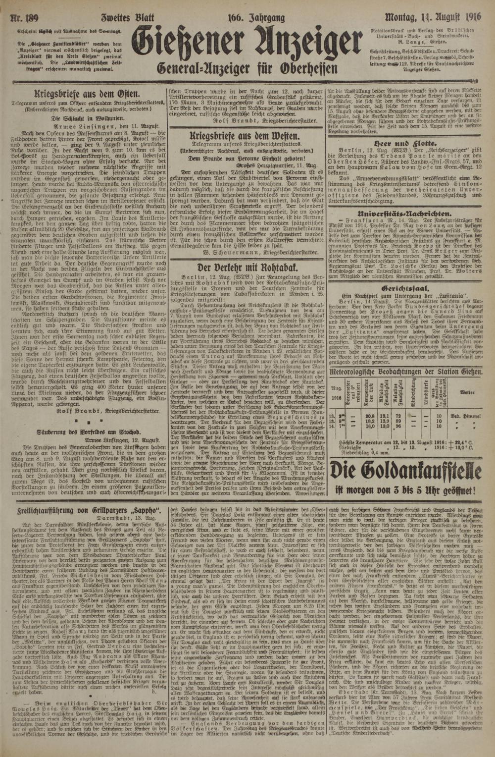 Regionale Zeitungen aus der Zeit des Ersten Weltkrieges